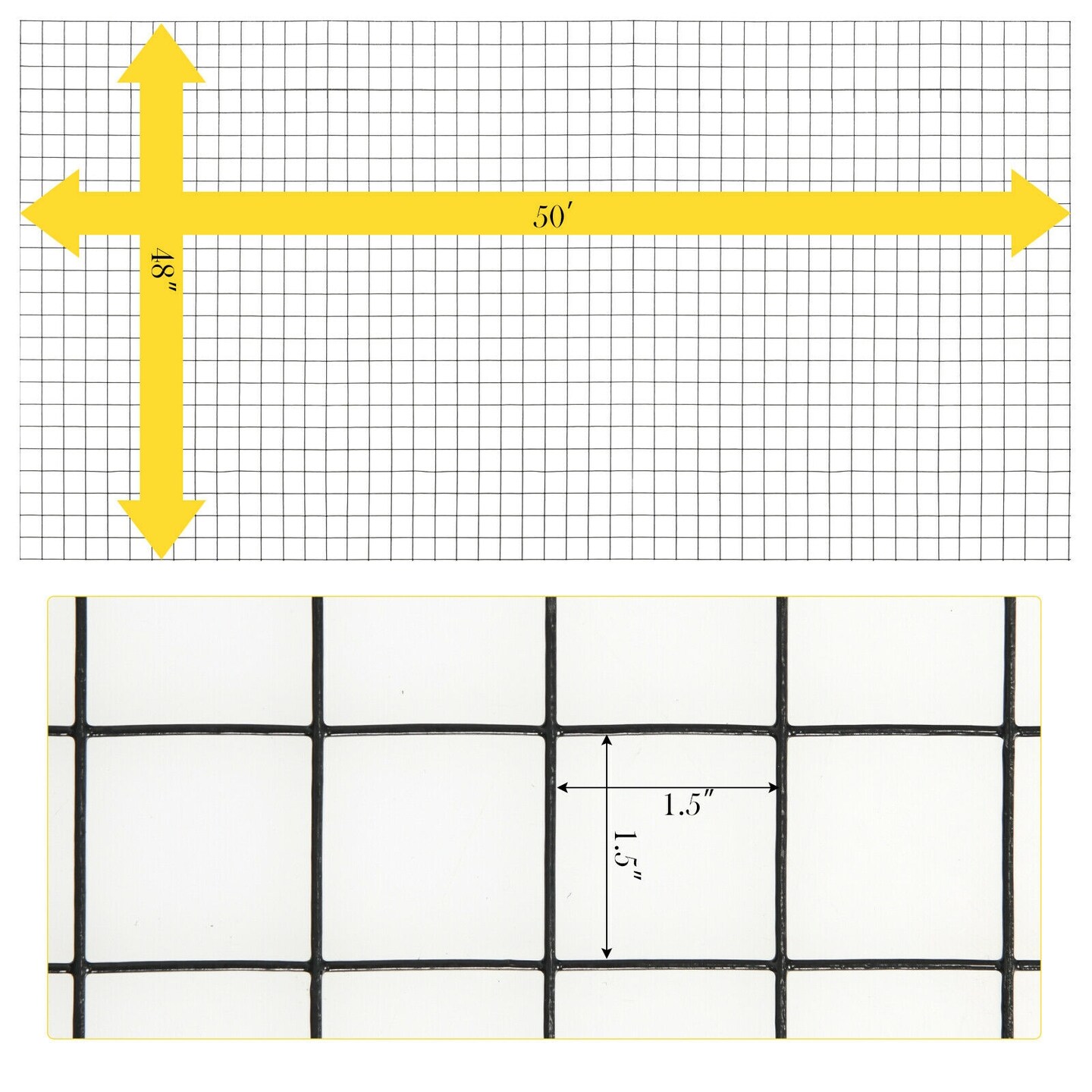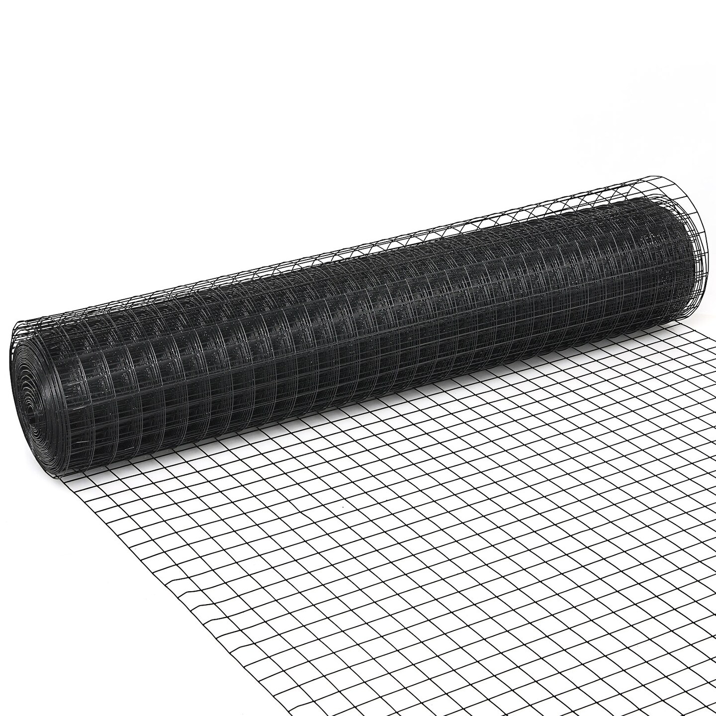 48"x50' Black Steel Wire Mesh Roll 16 Gauge Vinyl Coated Fence for Chicken Coop and Tree Guard