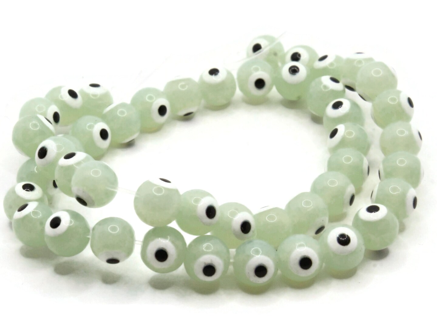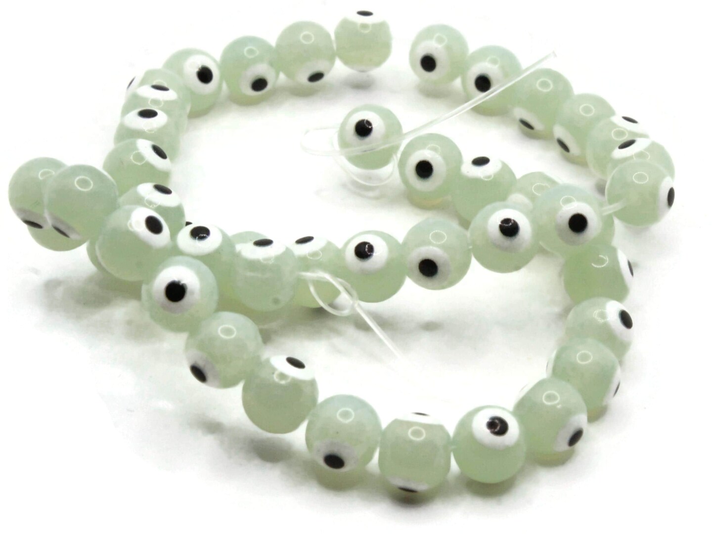49 8mm Light Green Evil Eye Small Smooth Round Glass Beads