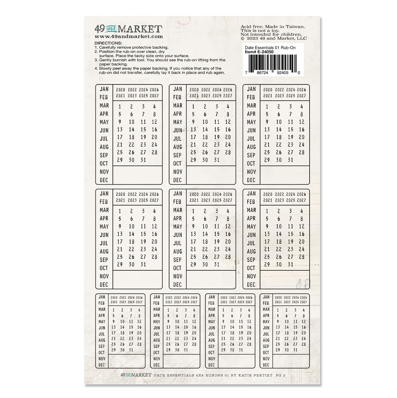 49 And Market Rub-Ons 6"X8" 2/Sheets-Date Essentials 01