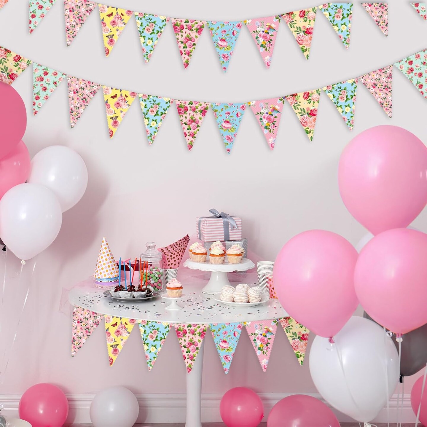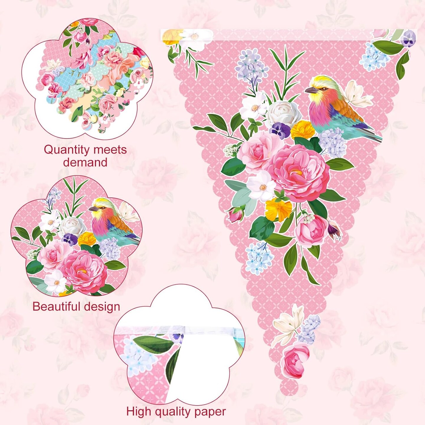 49 ft Tea Party Floral Paper Bunting – 60 Pcs Wildflower Garland Pennants for Outdoor/Indoor Birthday, Baby Shower, Bridal, Wedding & Garden Wonderland Décor