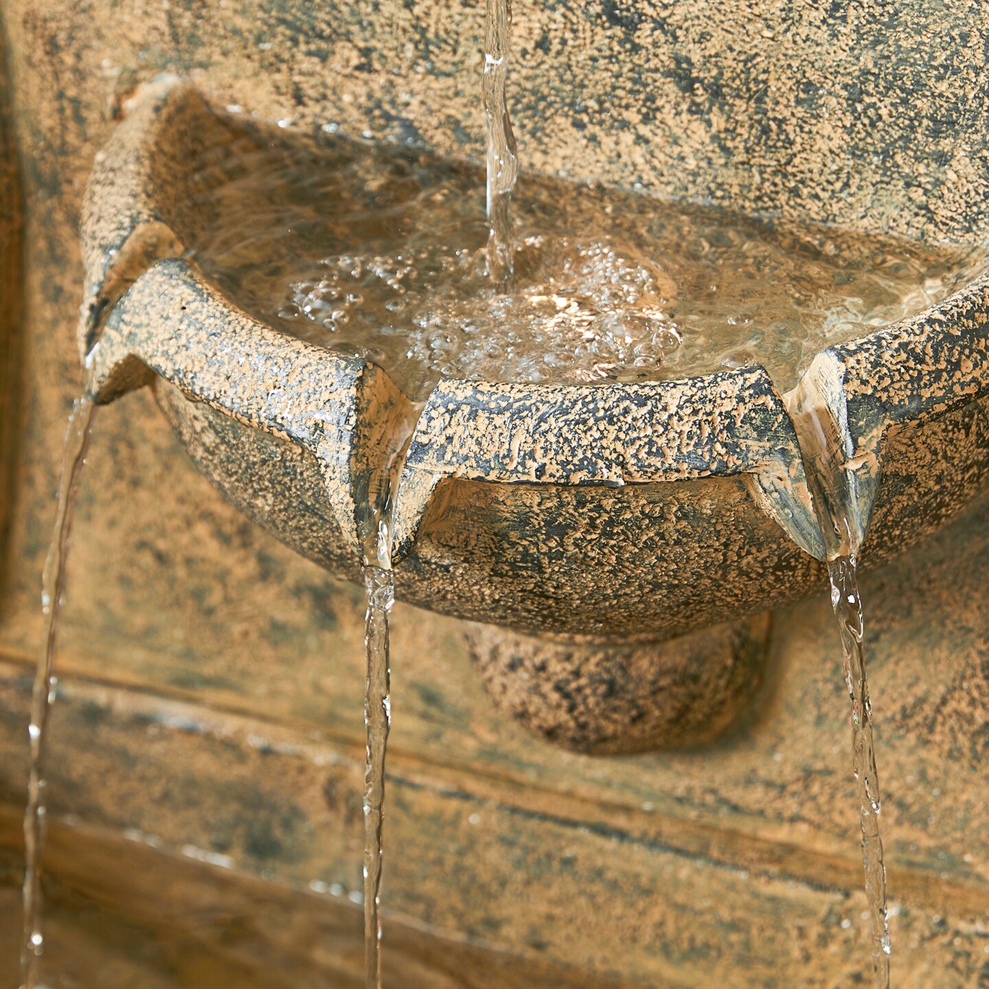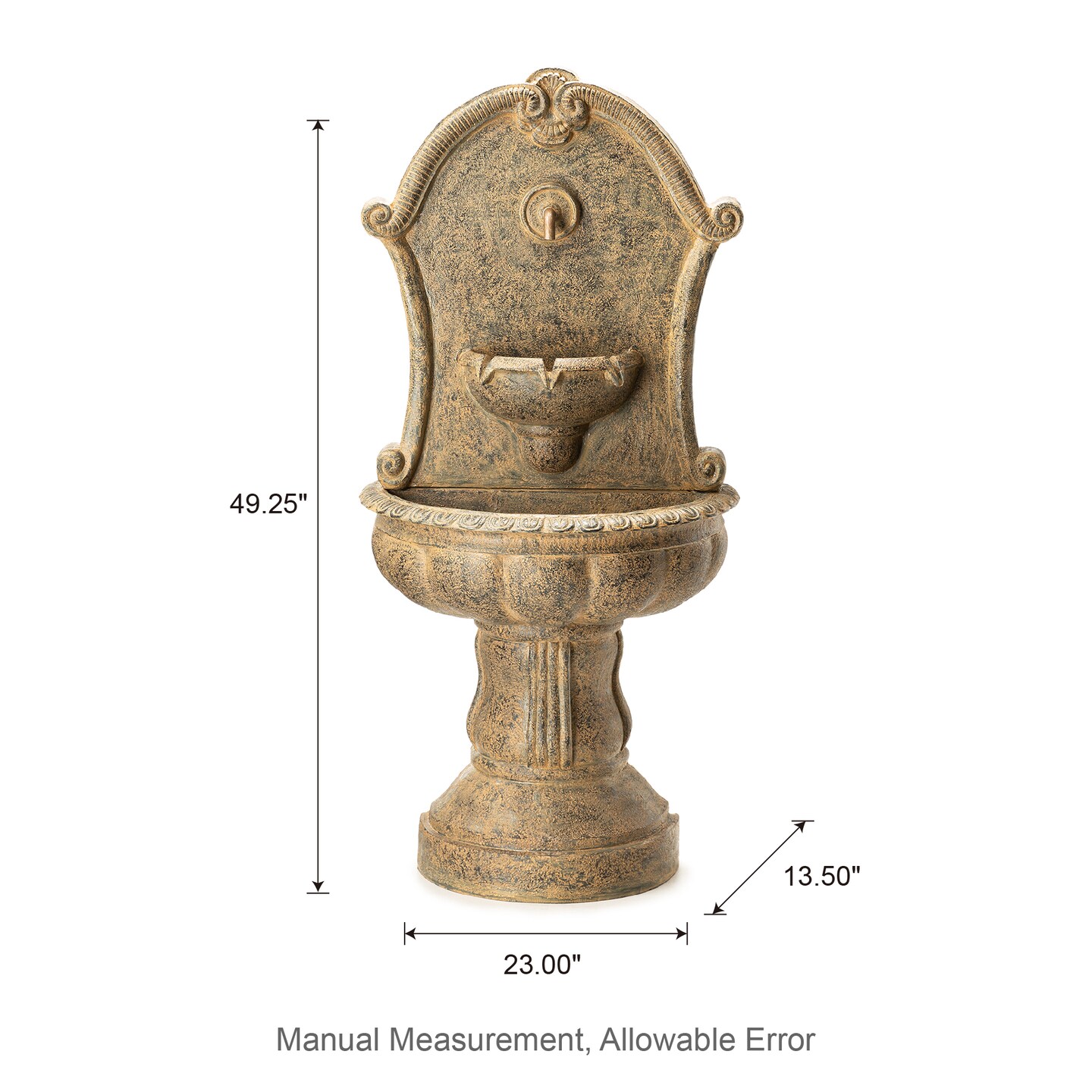 49.25''H Antique European Style Faux Granite Sculptural Multi-tiered Pedestal Polyresin Outdoor Floor Fountain with Pump and LED Light