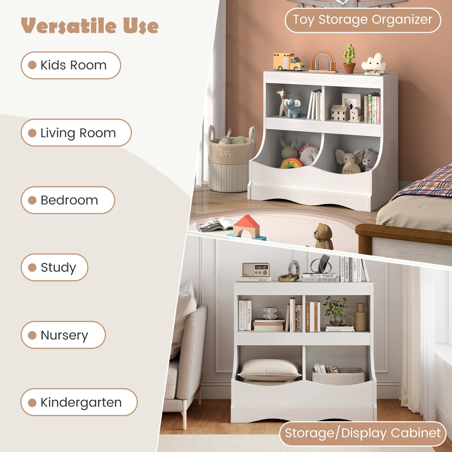 4-Cubby Toy Storage Organizer and Kids Bookcase for Playroom