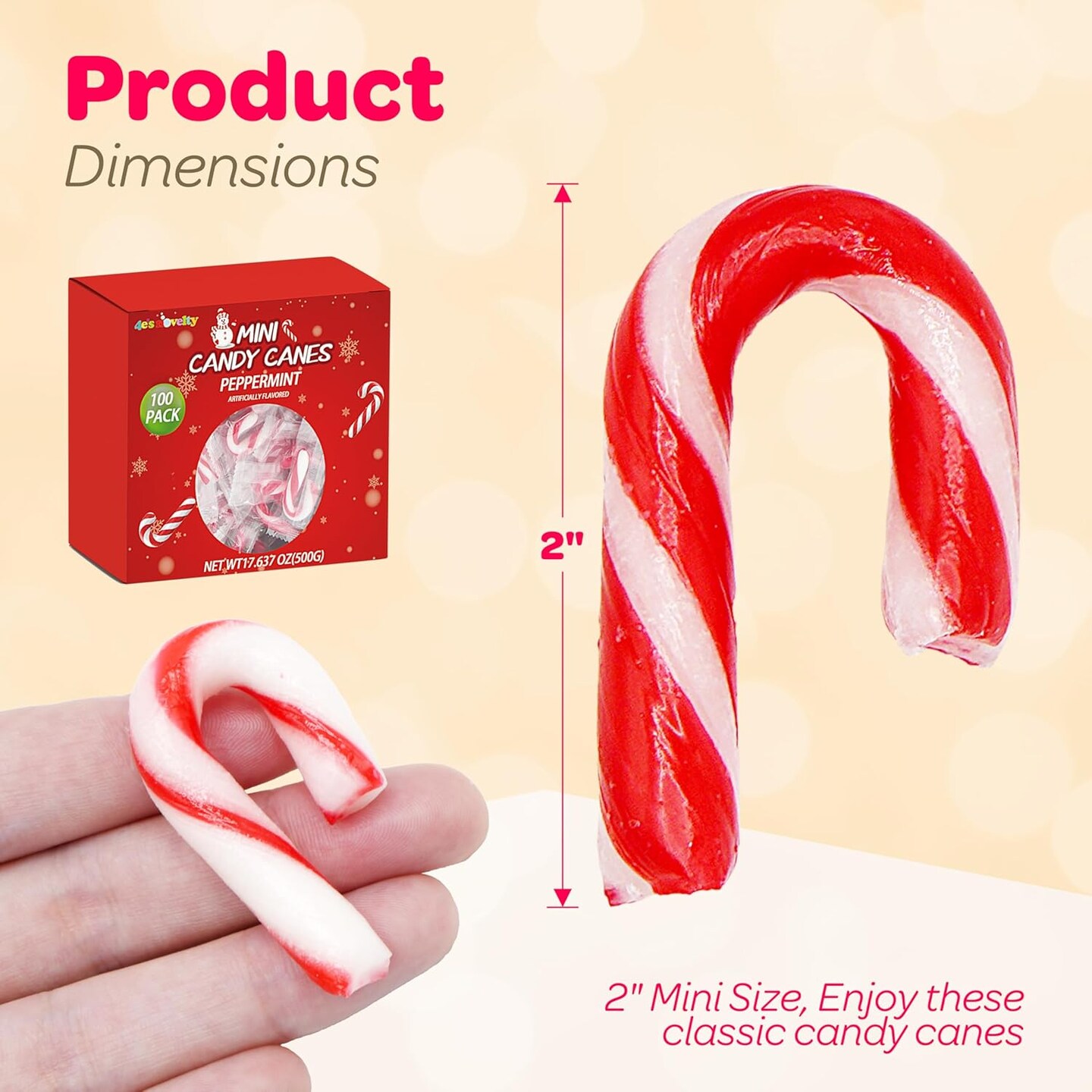 4E's Novelty 100 Pack Mini Candy Canes 2", Individually Wrapped Peppermint Candy, Small Holiday Treats for Christmas Parties, Stockings, Gift Bags, Baking & Hot Cocoa Bars