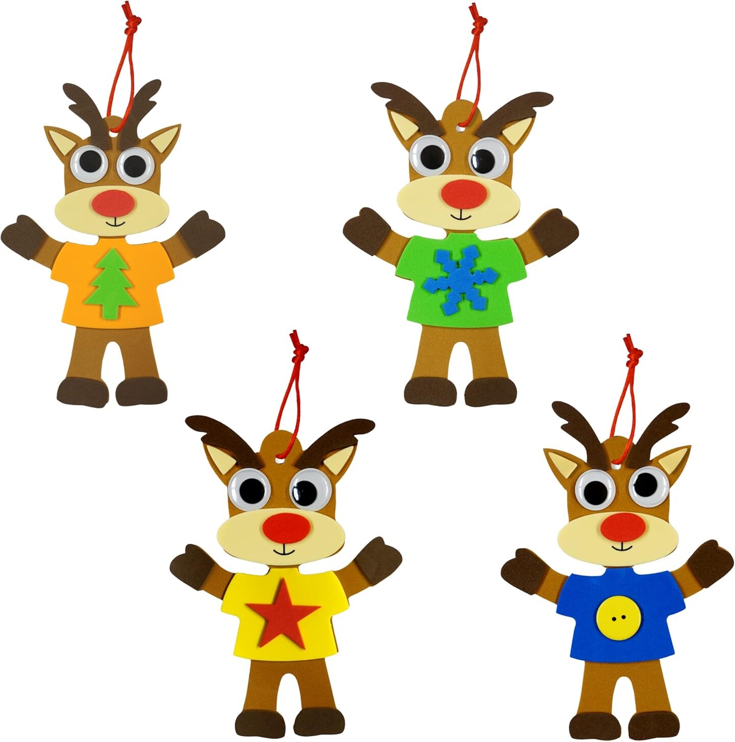 4E's Novelty 12 Pack Foam Christmas Reindeer Ornament Craft for Kids, Self-Adhesive DIY Holiday Craft Kit, Bulk Christmas Crafts for Kids Ages 4-8, 8-12, Toddlers Party Favors & Goodie Bag Fillers