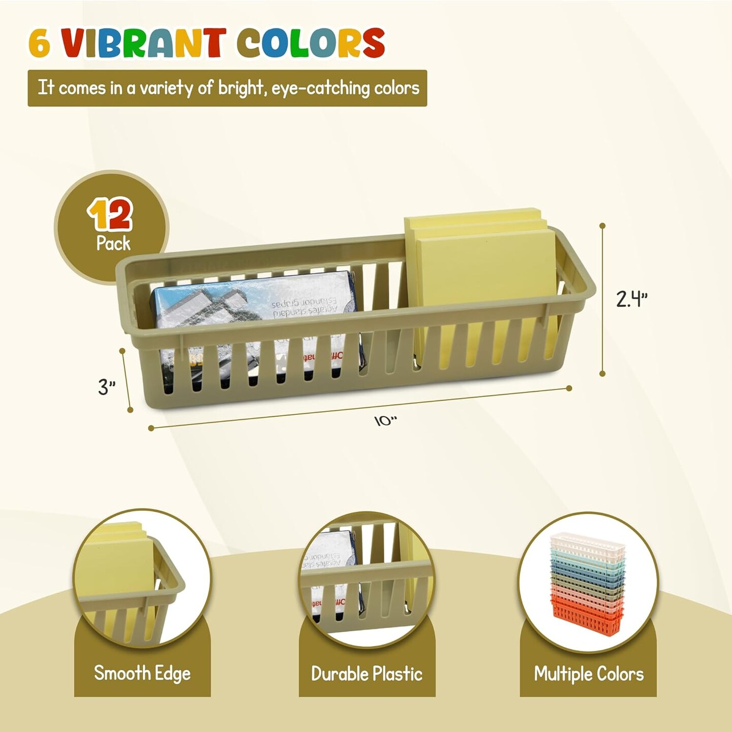 4E's Novelty 12 Pack Pencil Trays in Vibrant Boho Colors, Durable Pencils Tray, Stylish Pen Baskets, Fun Boho Colorful Pen Tray, Durable and Versatile Practical Pencil Trays for Students Supplies