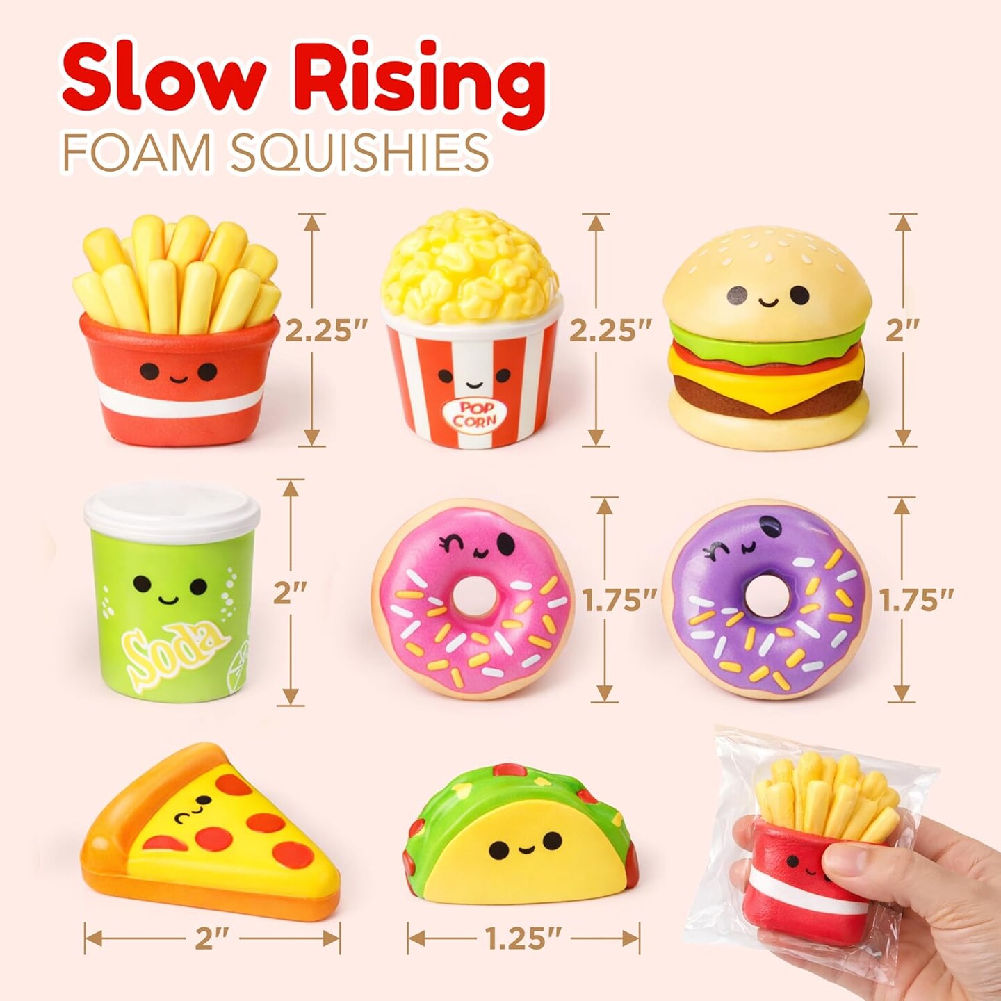 4E's Novelty 24 Pack Fast Food Squishy Toys for Kids Bulk - Slow Rising Individually Wrapped Small Foam Squishies for Classroom & Birthday Party Favors