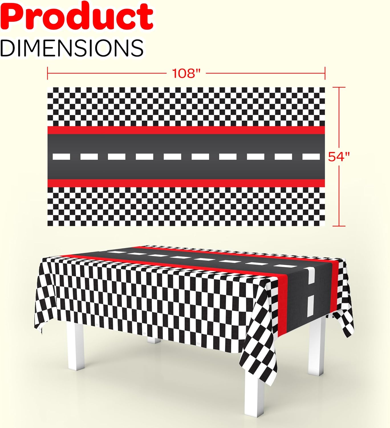 4E's Novelty 3 Checkered Racing Theme Tablecloth Plastic 54x108 Road Table Covers Racetrack Table Runner for Race Car Birthday Party Supplies Decorations