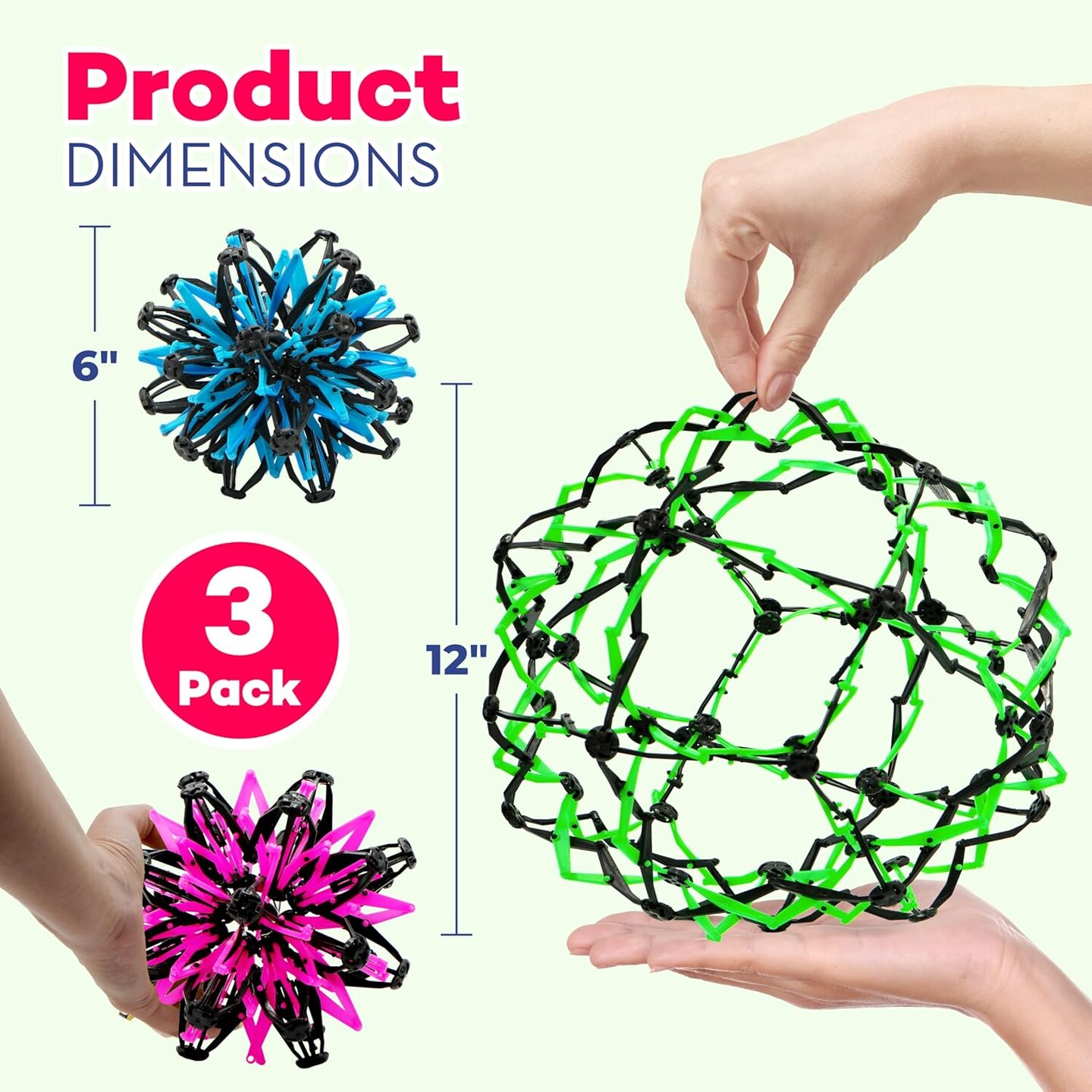 4E's Novelty 3 Pack Expandable Ball - Stress Balls for Adults & Kids, Calm Down Corner Supplies & ADHD