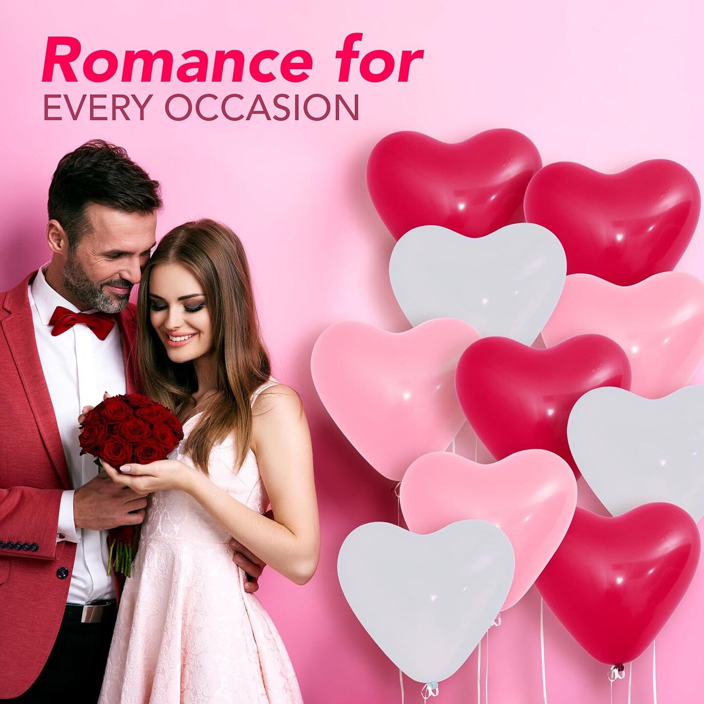 4E's Novelty 36 Pack Latex Heart Shaped Balloons 10 inch With Ribbon - Pink White Red Heart Balloons, Valentines Day Balloons, Perfect for Marriage Proposal & Valentines Day Decorations & Wedding Party