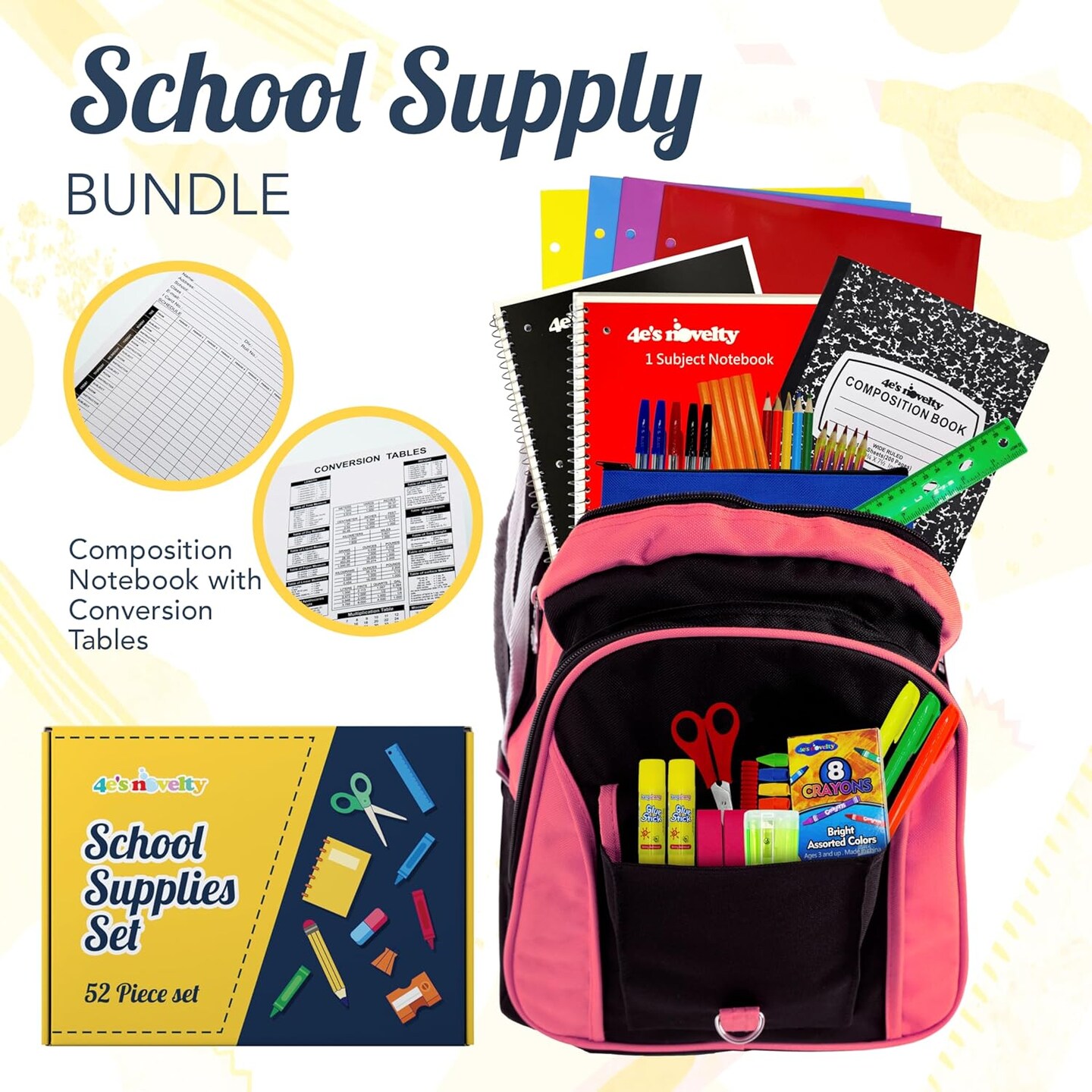 4E's Novelty 44 Pieces Schools Supplies Kit, Back To School Supply Box With Essential Student Kits, Pens, School Supply Bundle For Safe And Daily Use, Elementary Schools Supplies Kit For Classroom