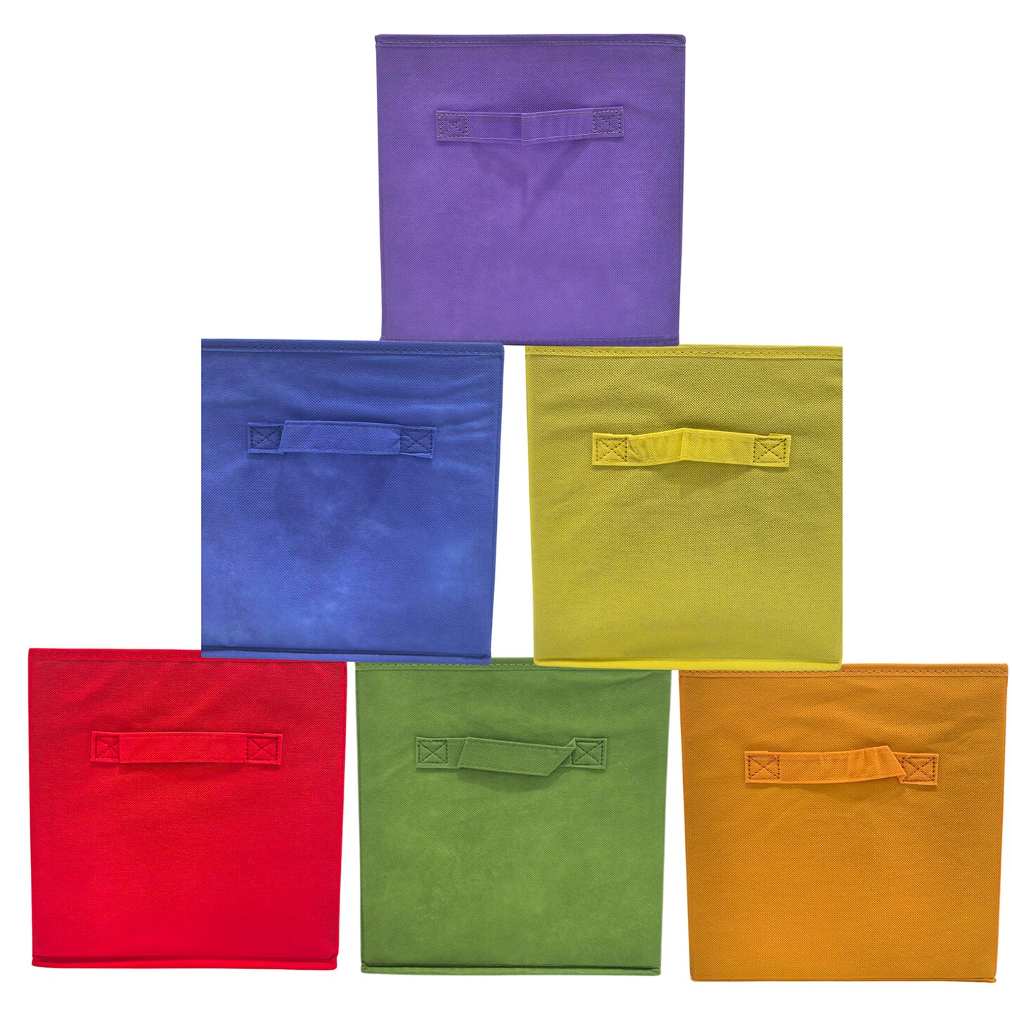 4E's Novelty 6 Packs 11 Inch Rainbow Color Storage Foldable Cube Bins, Colorful Storage Baskets For Nursery, Kids Room, Fabric Baskets For Toys, Clothes, Cube Bins Versatile Uses Daily Purpose