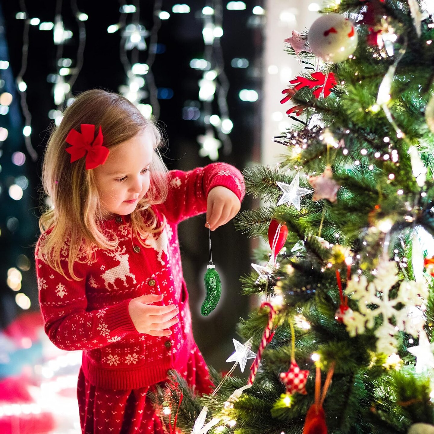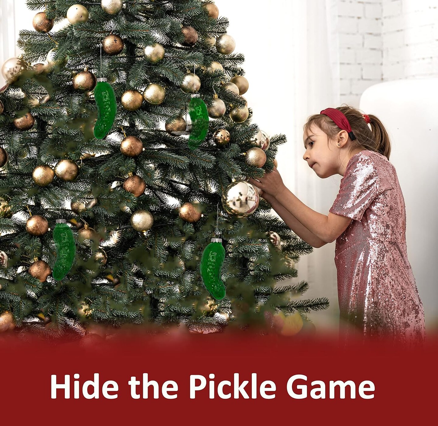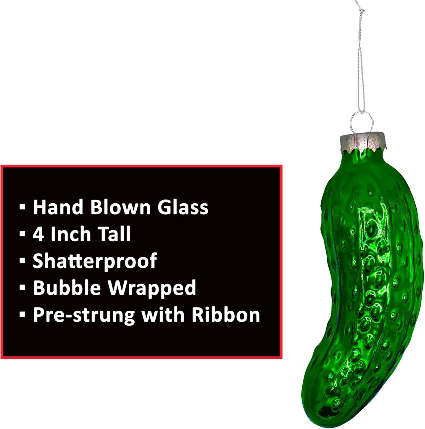 4E's Novelty Blown Glass Pickle Ornament for Christmas Tree 4” – Traditional German Christmas Pickle Game Ornament, Metallic Green Glass Christmas Decoration, Funny Holiday Gift or White Elephant