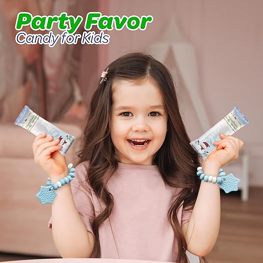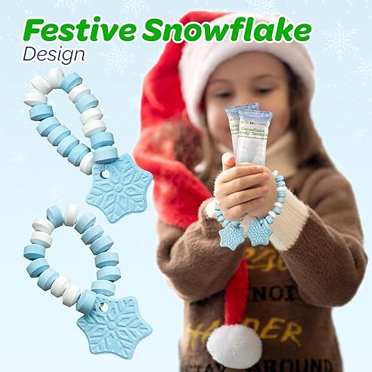 4E's Novelty Christmas Candy Bracelets - 30-Pack Christmas Shapes Bulk Candies Individually Wrapped, Fun Christmas Stocking Stuffers & Party Favor Candy for Kids, Blueberry Candies Bracelet
