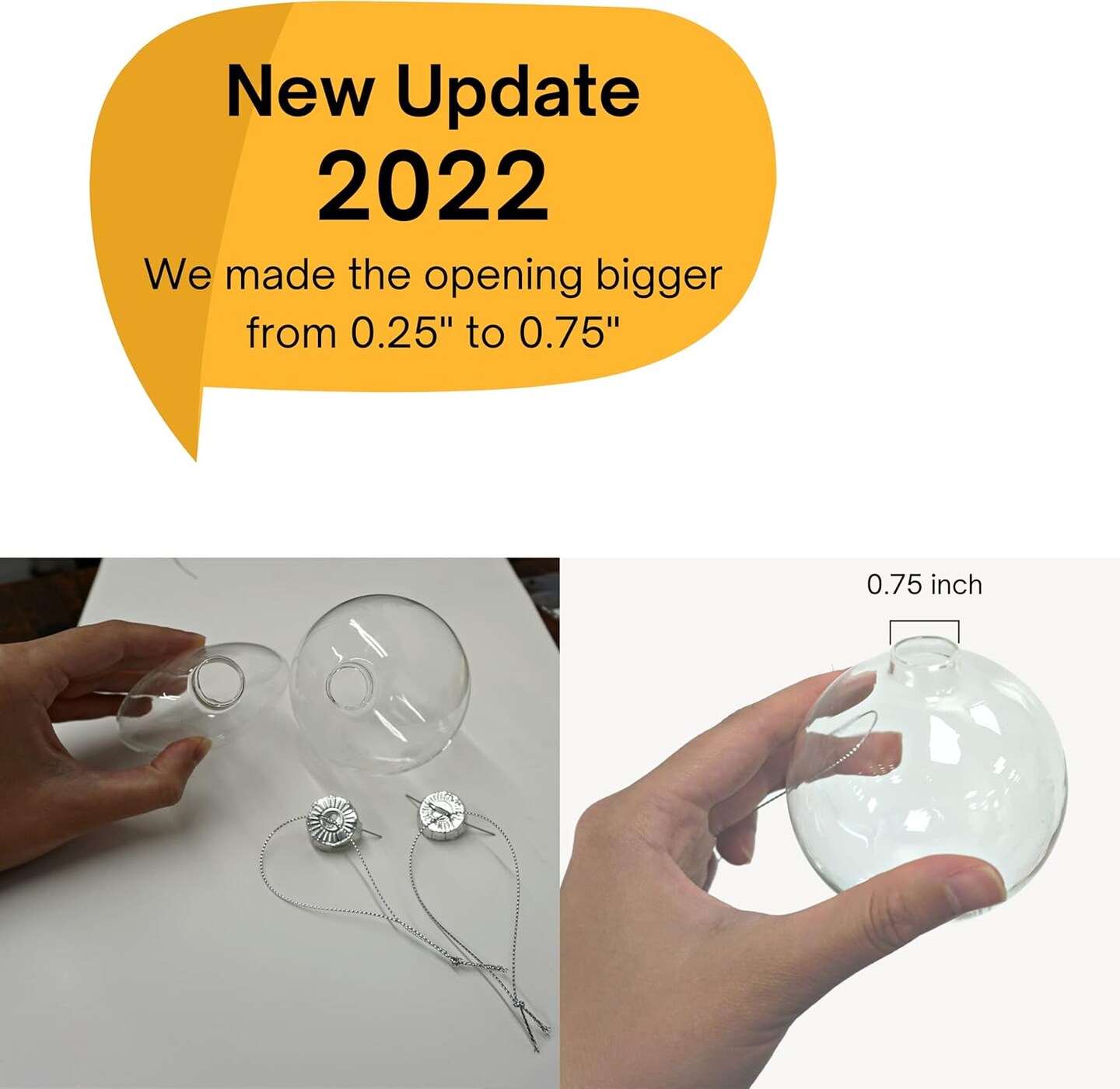 4E's Novelty Clear Glass Ball & Flat Ornaments, 4 Pack 3.15" (80mm) Fillable Ornaments for Crafts, DIY Christmas Tree Decorations, Transparent Hanging Ornaments