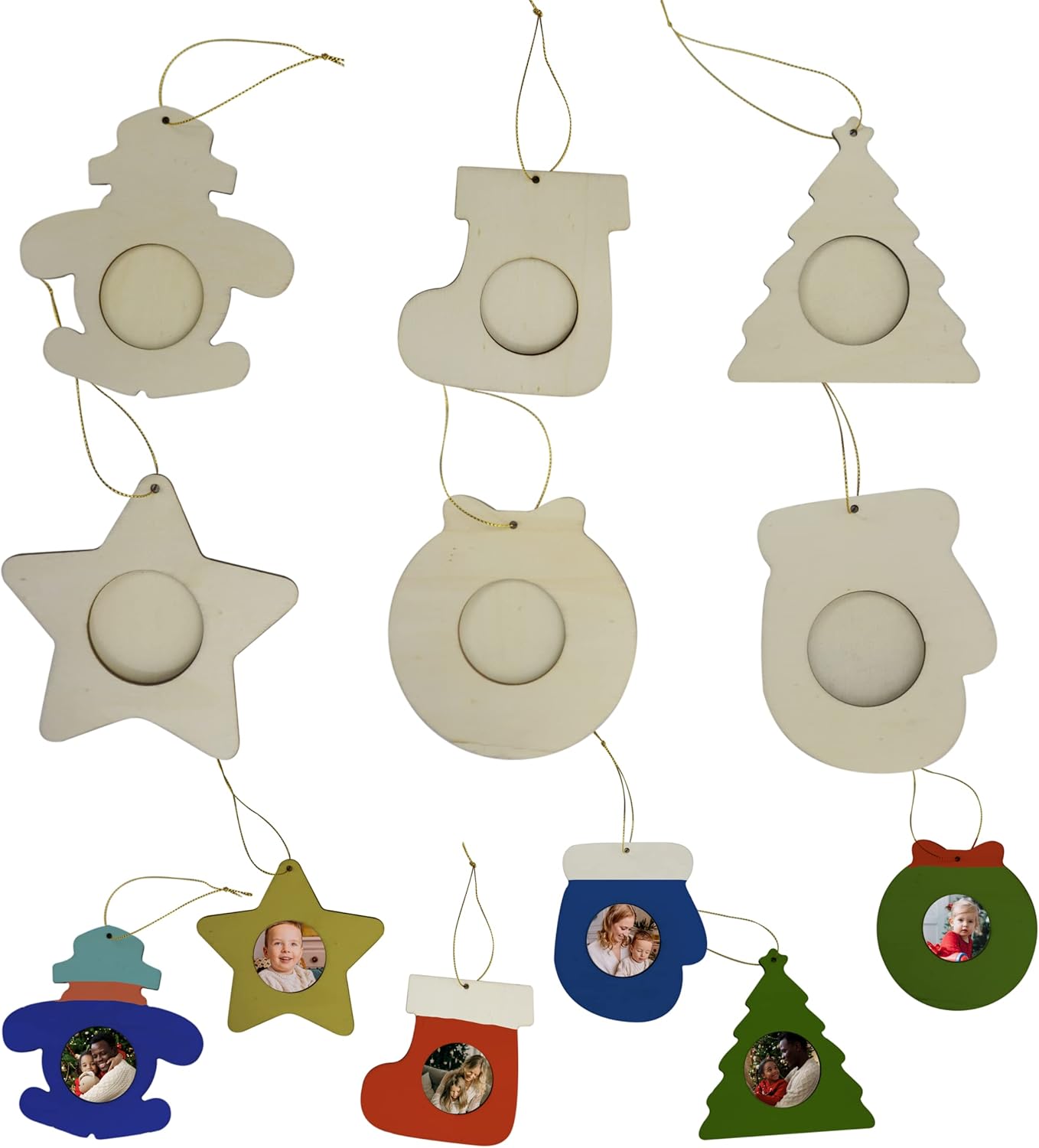 4E's Novelty DIY Wooden Picture Frame Christmas Ornaments Crafts (12 Pack) – Unfinished Wood Frames to Paint, Adult & Kids Holiday DIY Craft Kit, Blank Hanging Ornaments for Christmas Decorating
