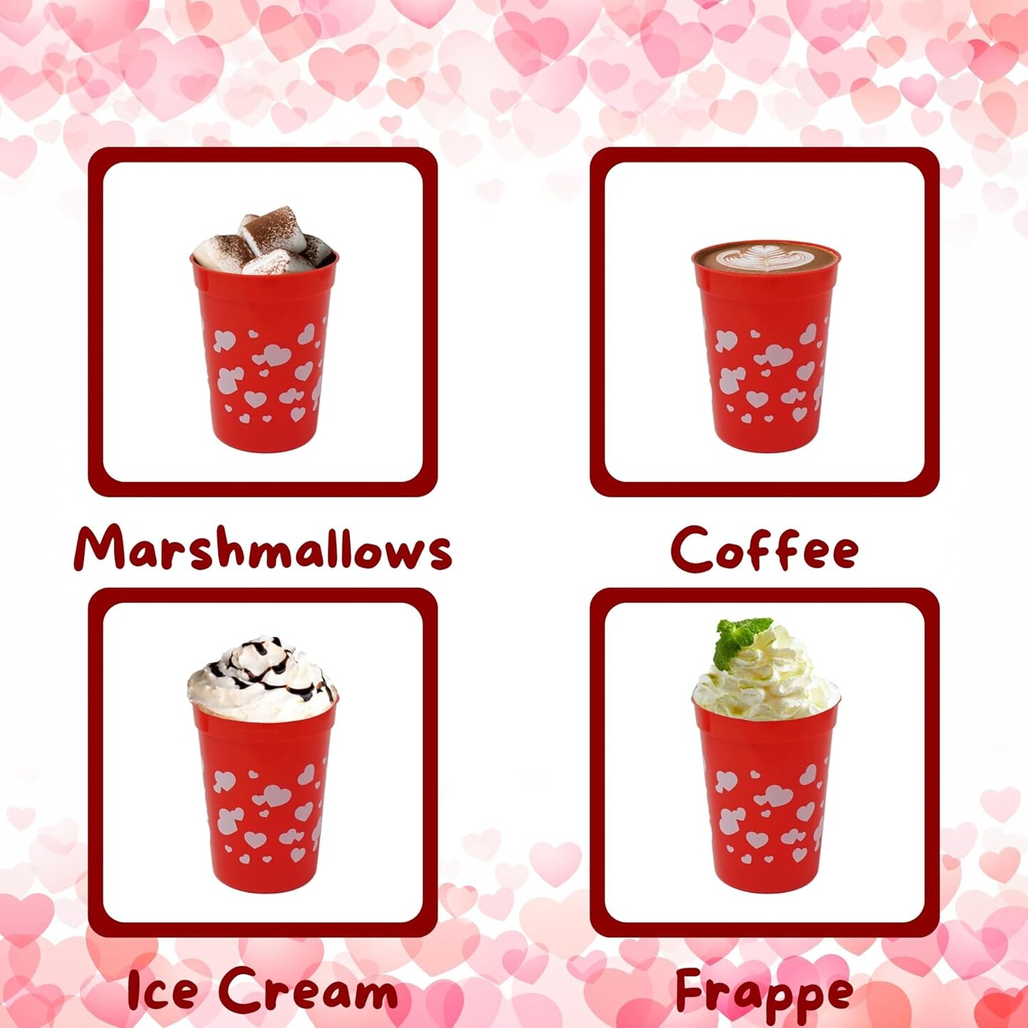 4E's Novelty Kids Valentine's Day Plastic Reusable Cups – 8 OZ, 12 Pack Red Heart Tumblers, Bulk Party Favors, Classroom Gifts, Valentines Day Party Supplies for Kids & Adults