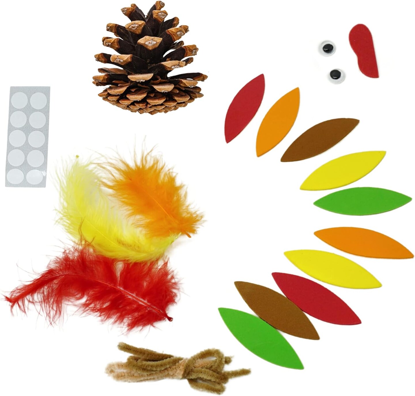4E's Novelty Pinecone Turkey Craft Kit (4 Pack) – DIY Thanksgiving Crafts for Kids, Teens & Adults, Classroom Fall Arts & Crafts Activity, Individually Wrapped Kits, Table Centerpiece Decorations
