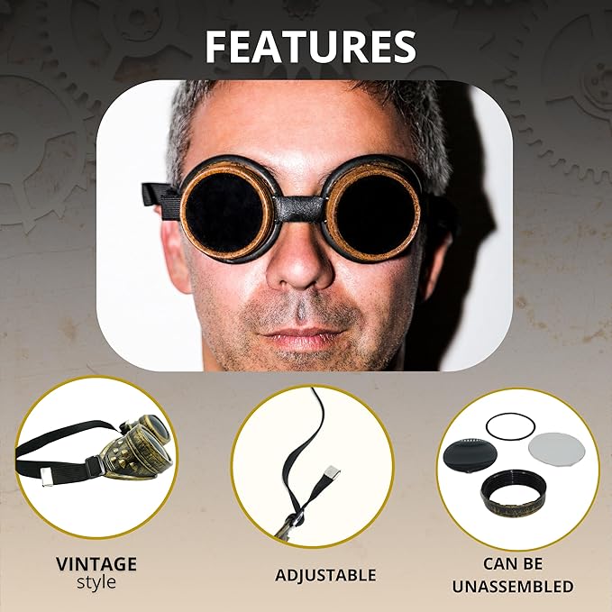 4E's Novelty Steampunk Goggles for Women & Men – Brass Vintage Steam Punk Glasses Costume Accessory for Mad Scientist, Victorian, Renaissance, Cosplay, Halloween, Rave, Cyberpunk, and Retro Outfits