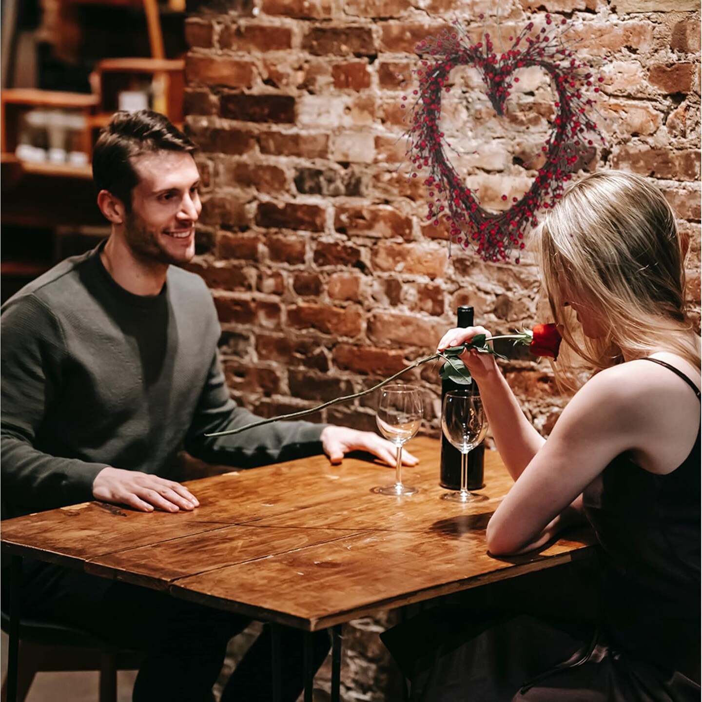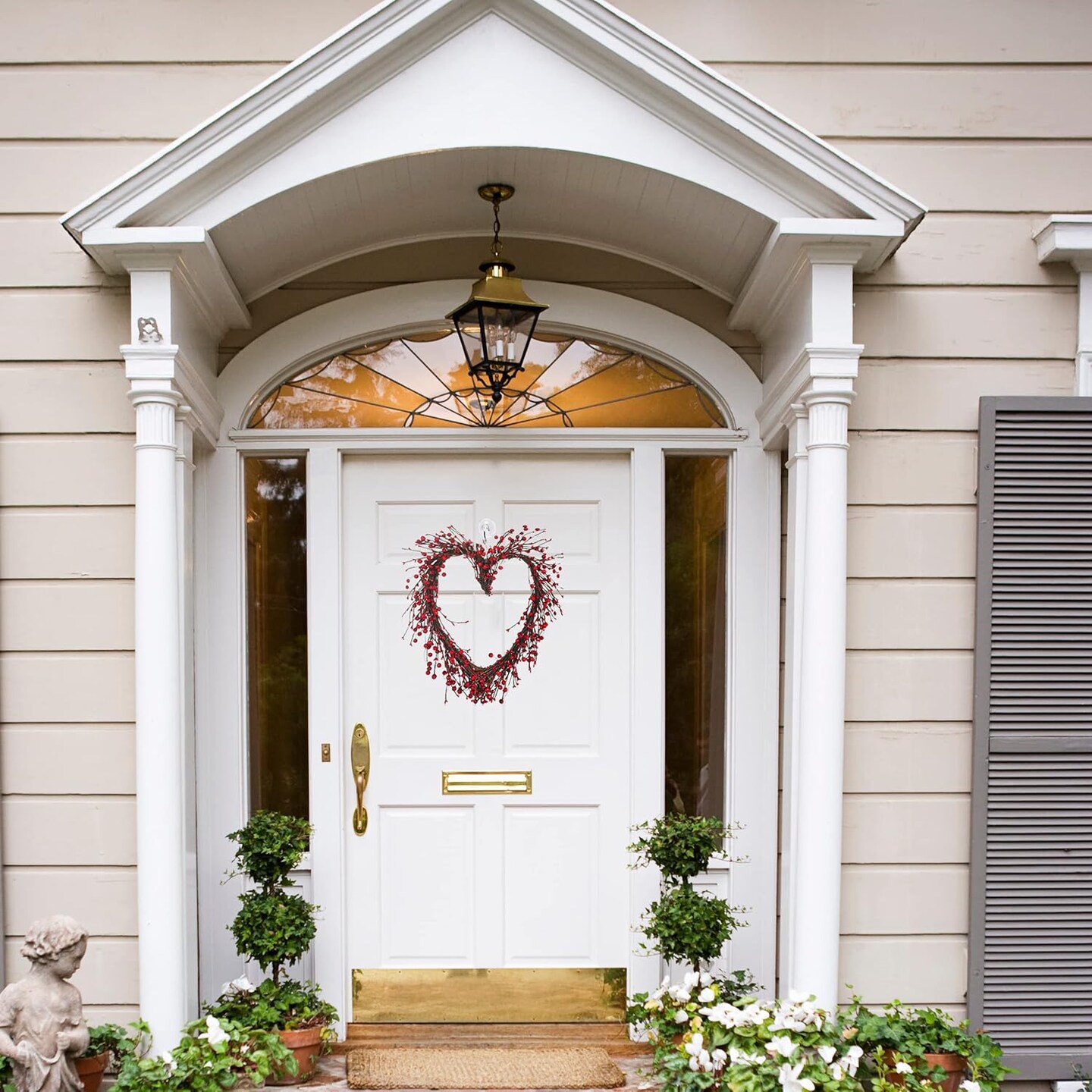 4E's Novelty Valentine’s Day Wreath 15" – Heart-Shaped Grapevine Wreath with Red Berries, Rustic Indoor Outdoor Valentine Decorations for Front Door, Wall or Mantel