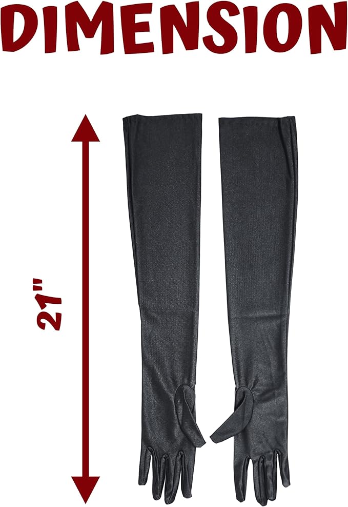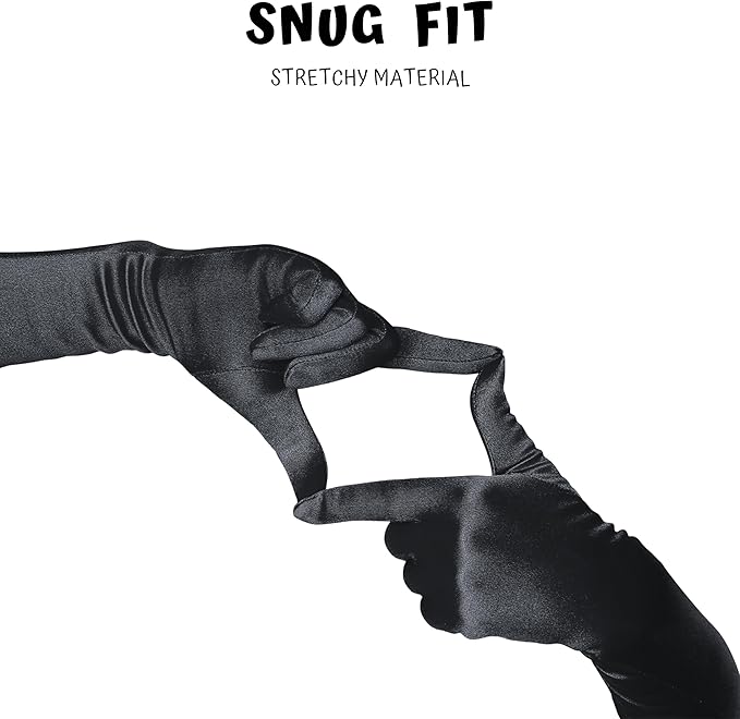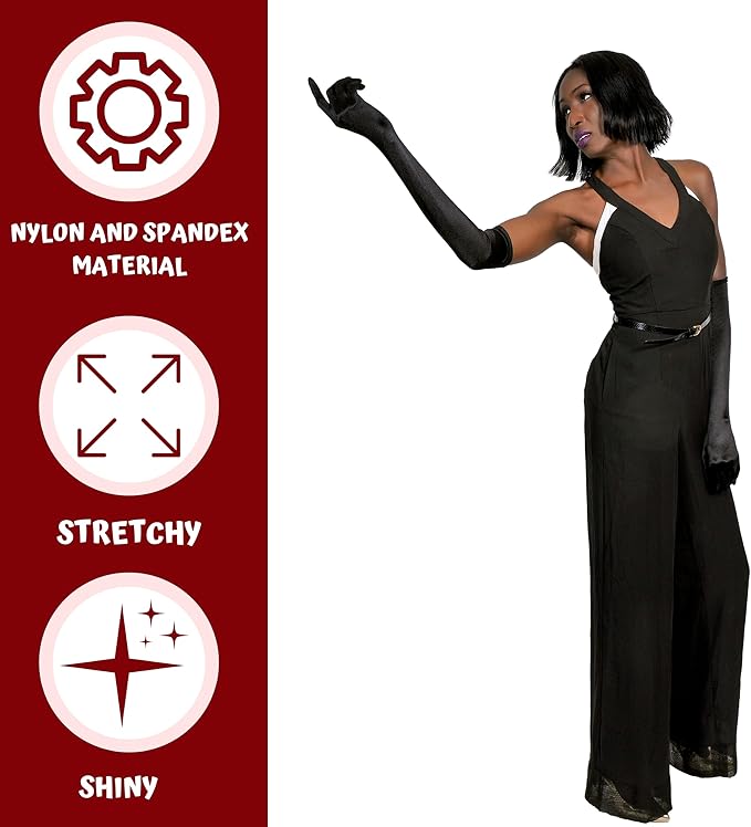 4E’s Novelty 21" Elbow Length Satin Gloves for Women – Black Long Opera Gloves for 1920s Flapper, Gatsby, Evening Party, Prom, Wedding & Costume Accessories, Vintage Old Hollywood Dress-Up