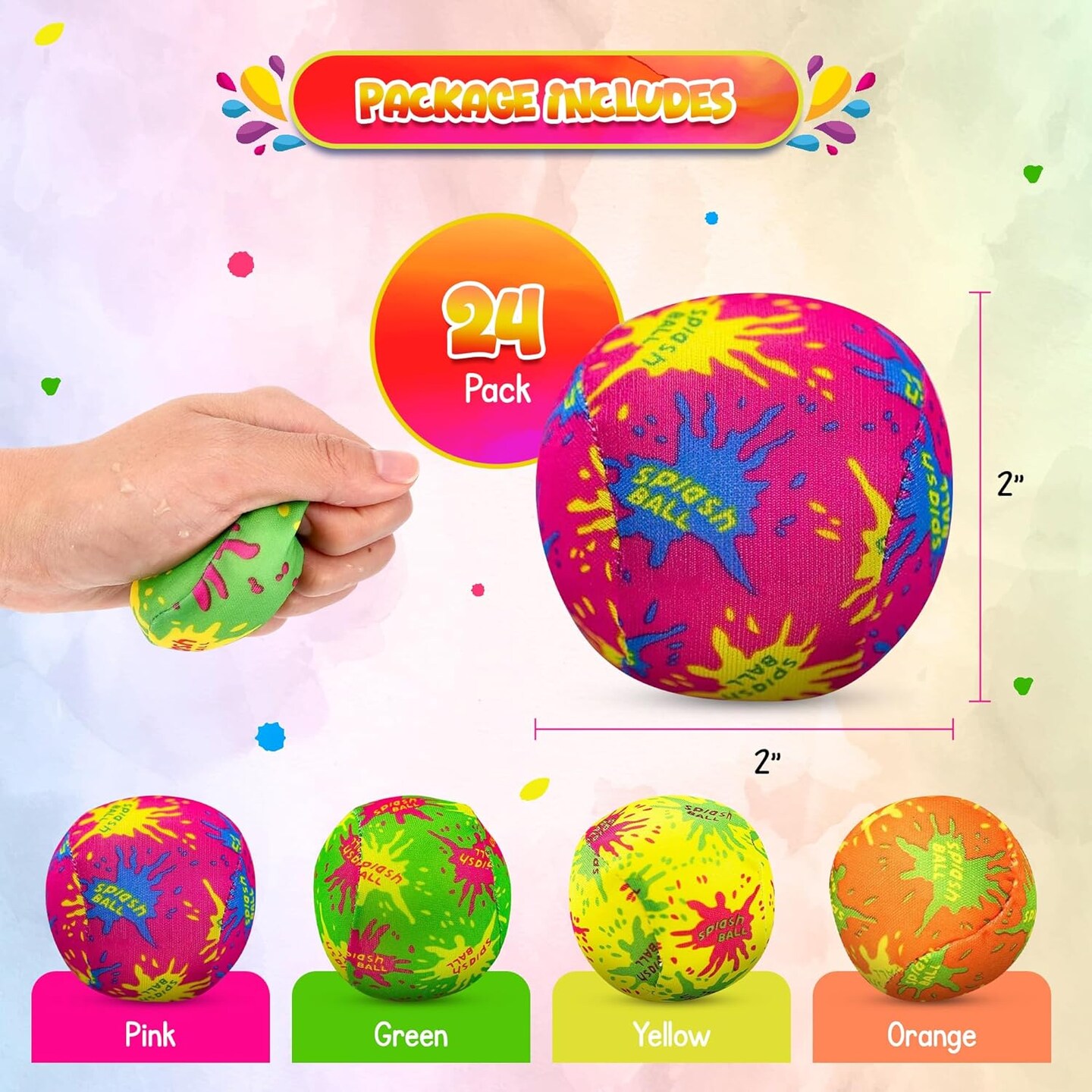 4E’s Novelty 24 Pack Water Bomb Splash Balls 2" Mini Water Absorbent Balls for Pool Beach Toys Party Favors for Kids Teacher school party