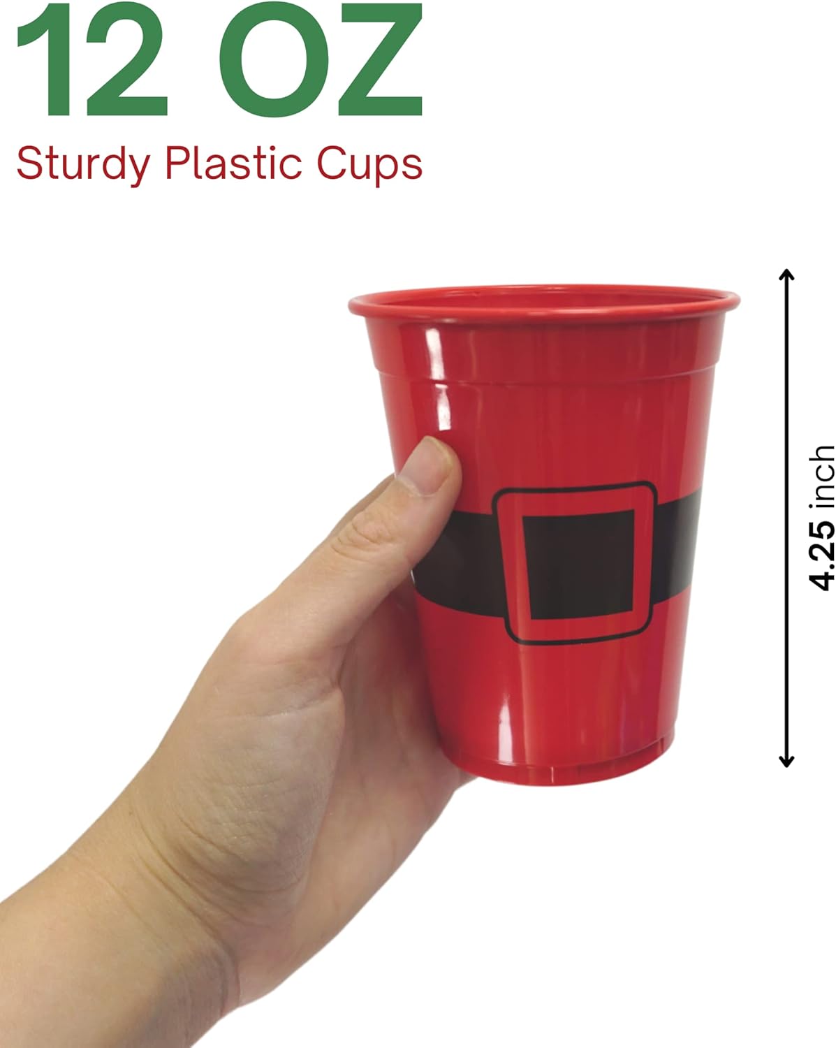 4E’s Novelty 50 Pack 16oz Christmas Cups for Party – Funny Disposable Plastic Holiday Cups with Santa & Humorous Quotes, Christmas Party Cups Bulk for Drinks, Cocoa & Party Favors for Kids & Adults