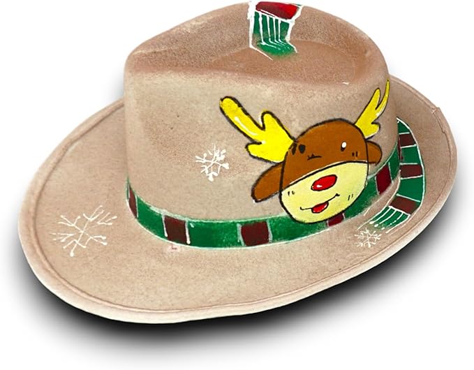 4E’s Novelty Christmas Fedora Hat for Adults – Brown Reindeer Themed Cowboy Hat for Men & Women, Polyester Felt Holiday Hat for Christmas Parties, Costumes & Festive Dress-Up