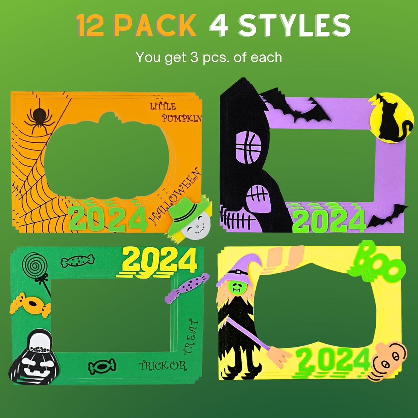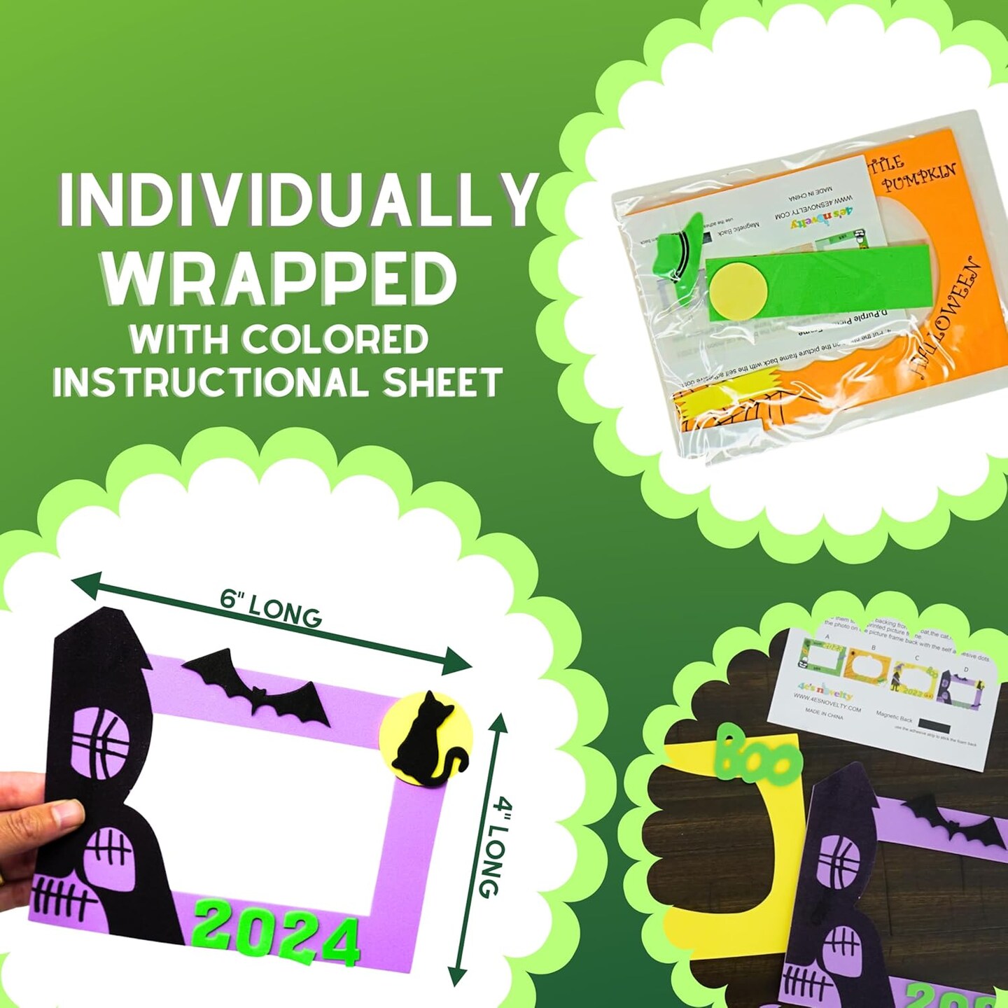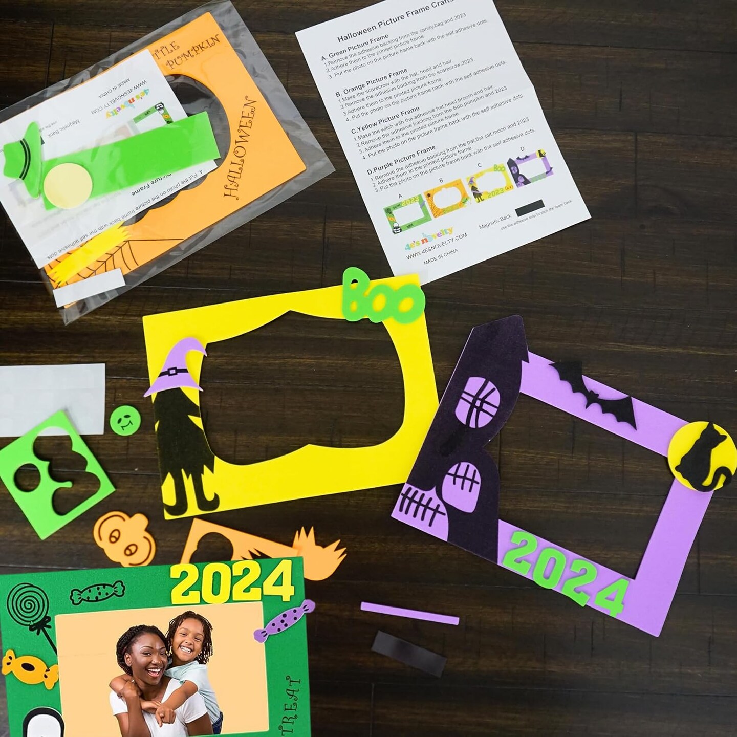 4E’s Novelty Halloween Picture Frame Craft Kit for Kids – 2024 Dated DIY Foam Craft Set, Makes 12 Self-Adhesive 4x6 Photo Frames, Mess-Free Fall Activity for Classroom, Parties, Arts & Crafts at Home