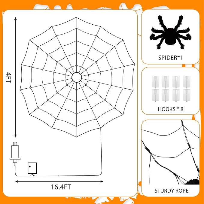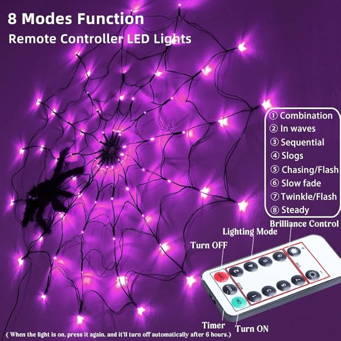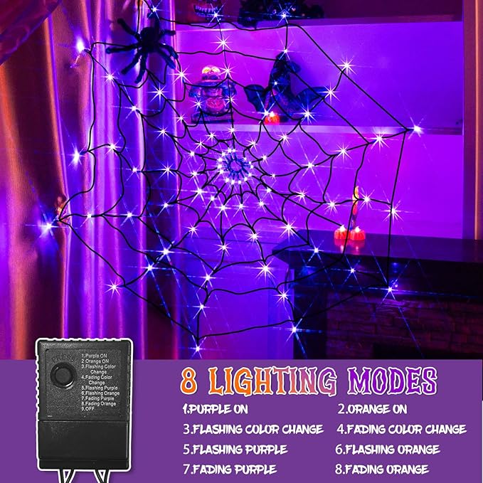 4FT 84LED Light up Spider Web, Net Lights with 8 Modes, Party Yard Haunted House Window Indoor Decor, Halloween Lighted Decorations Outdoor(Orange & Purple)