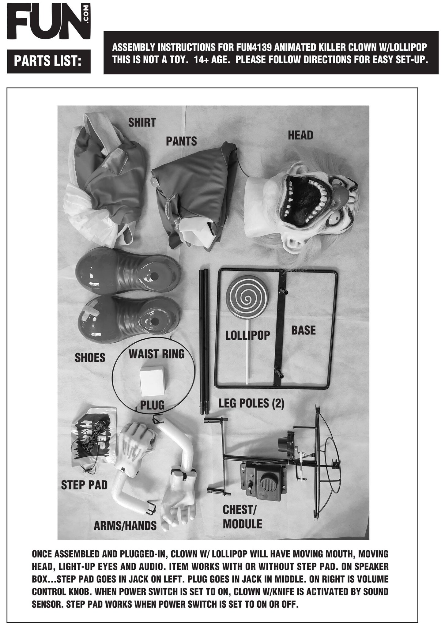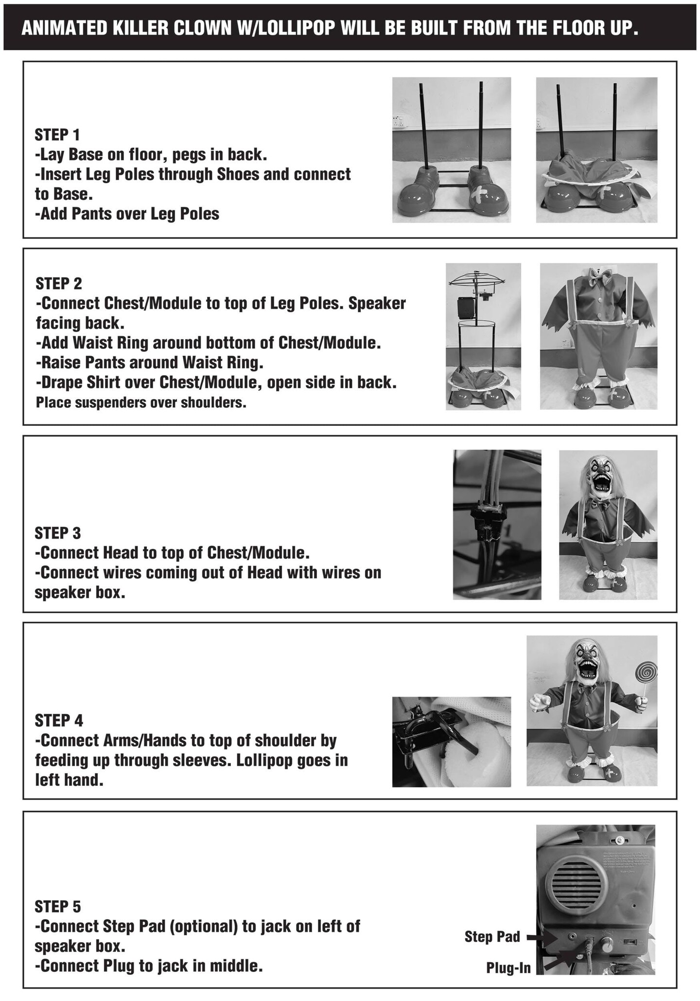 4FT Crazy Evil Killer Clown Animatronic Decoration