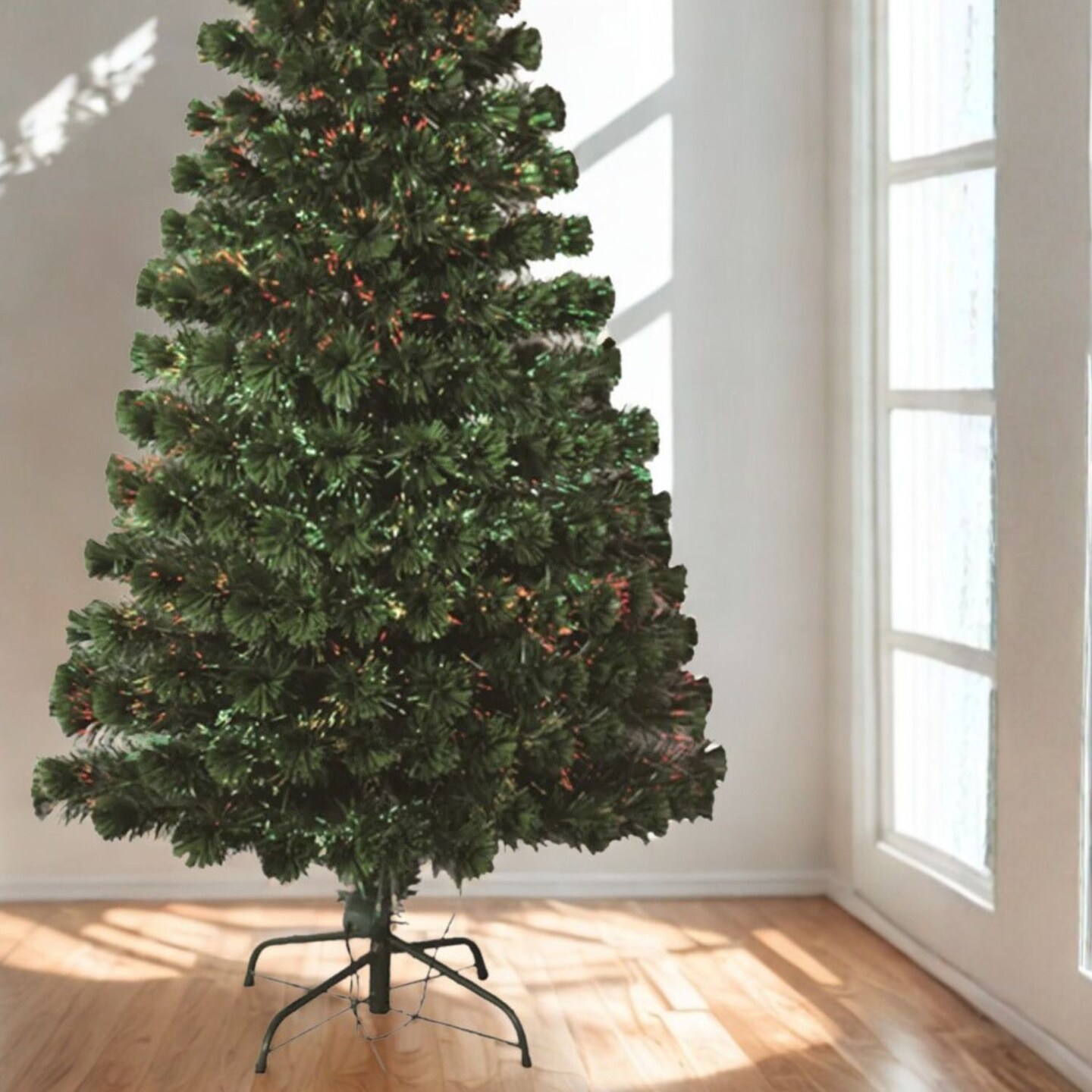 4ft Fiber Optic Christmas Tree with Bright LED Lights and Sturdy Metal Stand