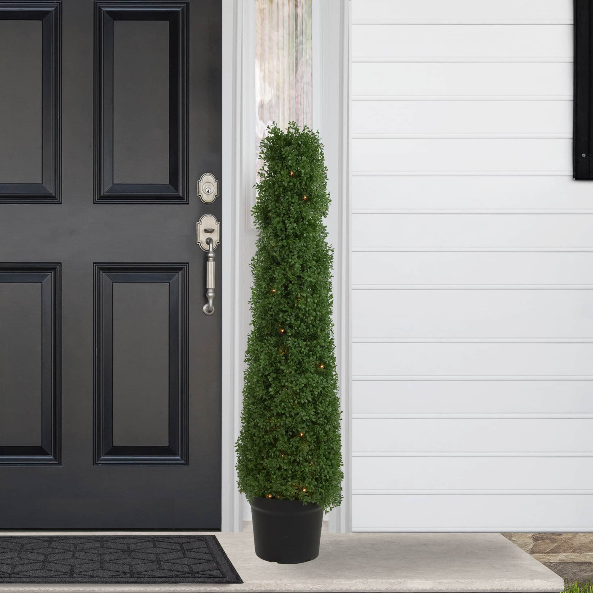 4ft. Pre-Lit Artificial Boxwood Cone Topiary Tree with Pot, Clear Lights