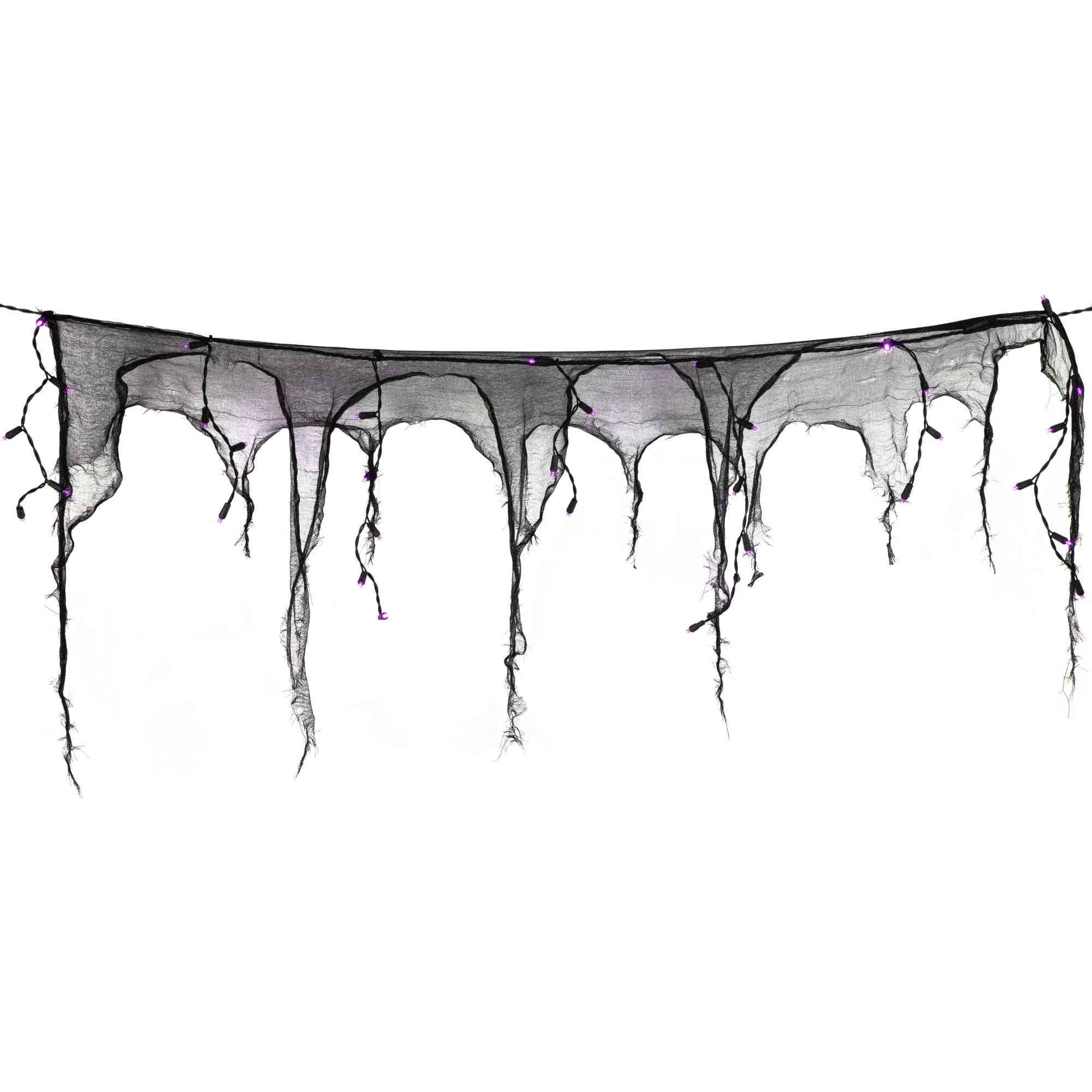 4ft. Pre-Lit Purple LED Halloween Black Gauze Drape Lights