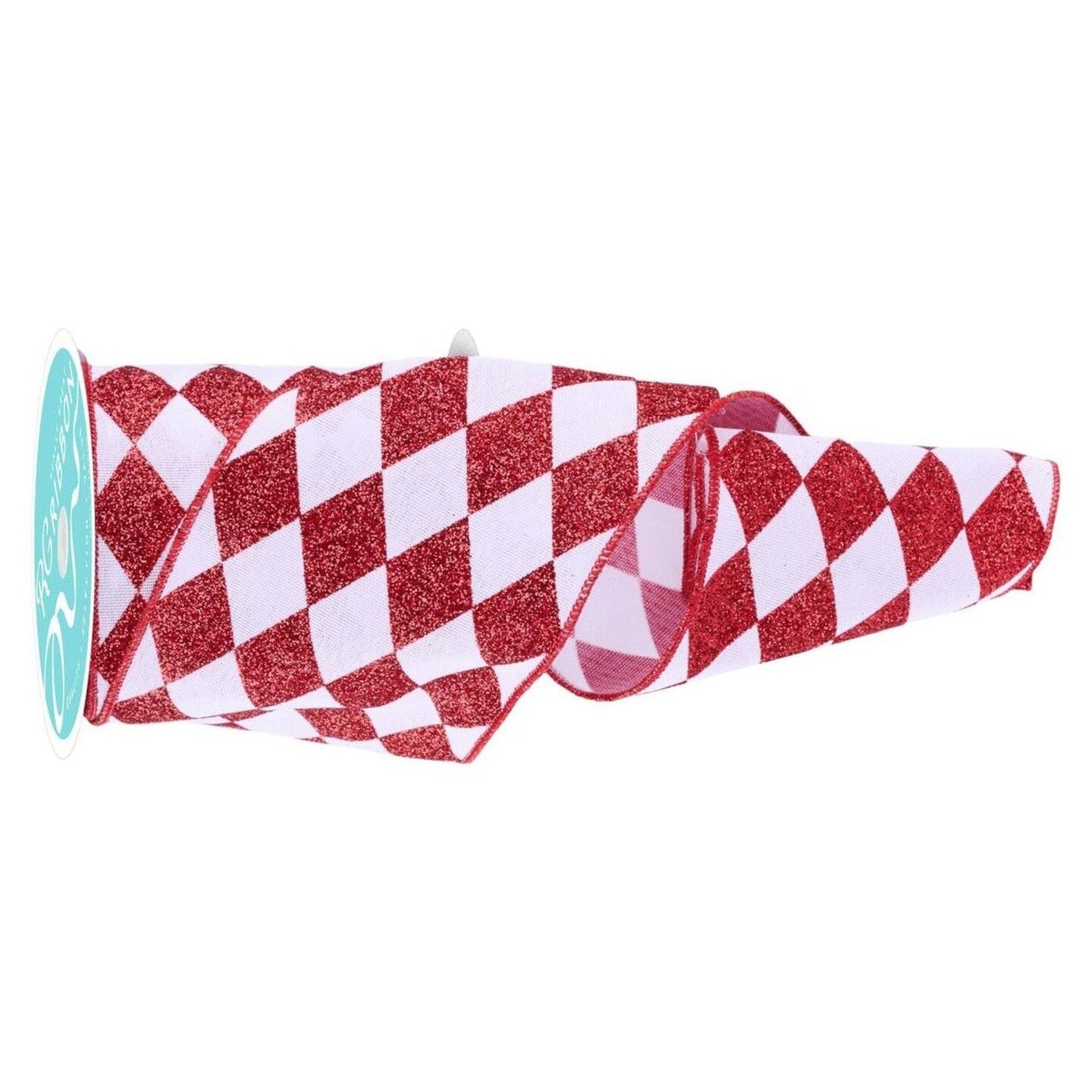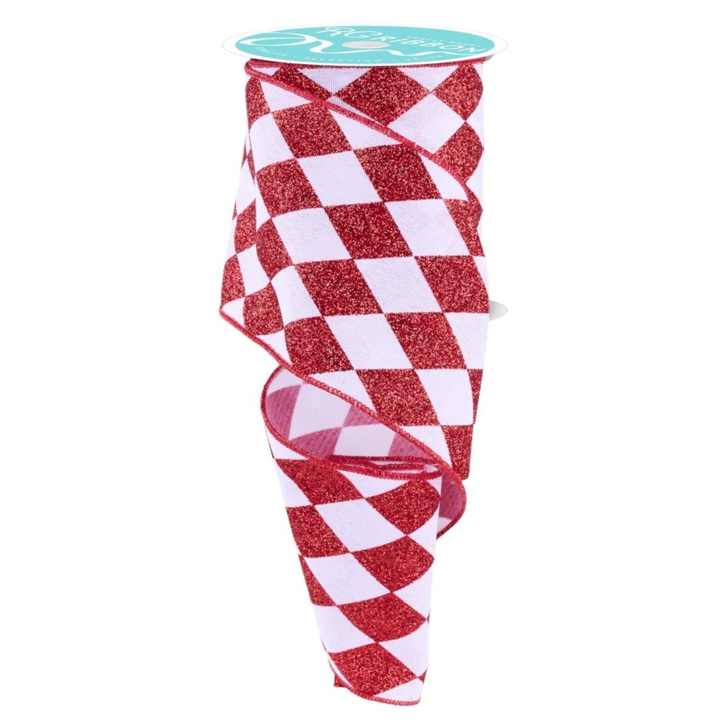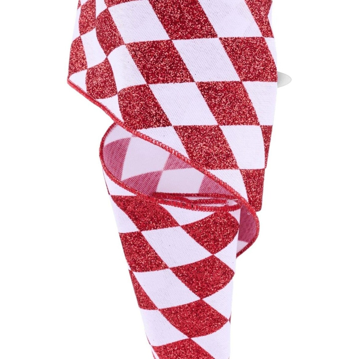 4in Glitter Harlequin Check Ribbon: Red (10 Yards)