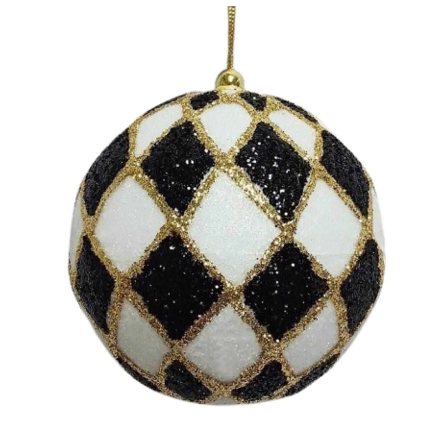 4inch Harlequin Glitter Ball Ornaments: Black/Gold