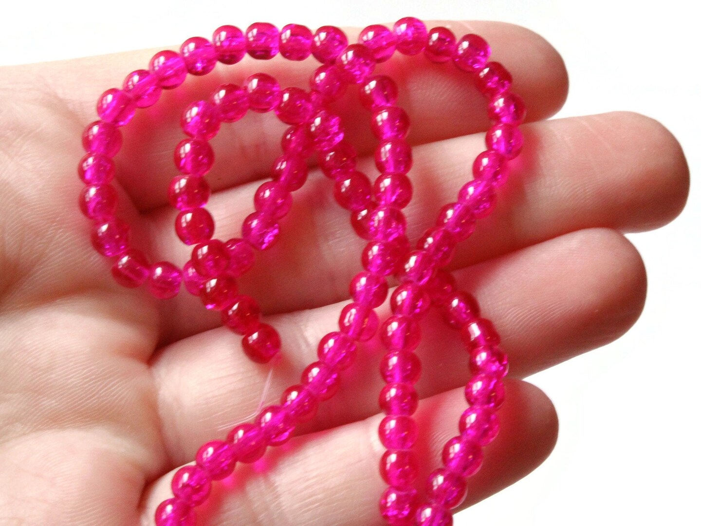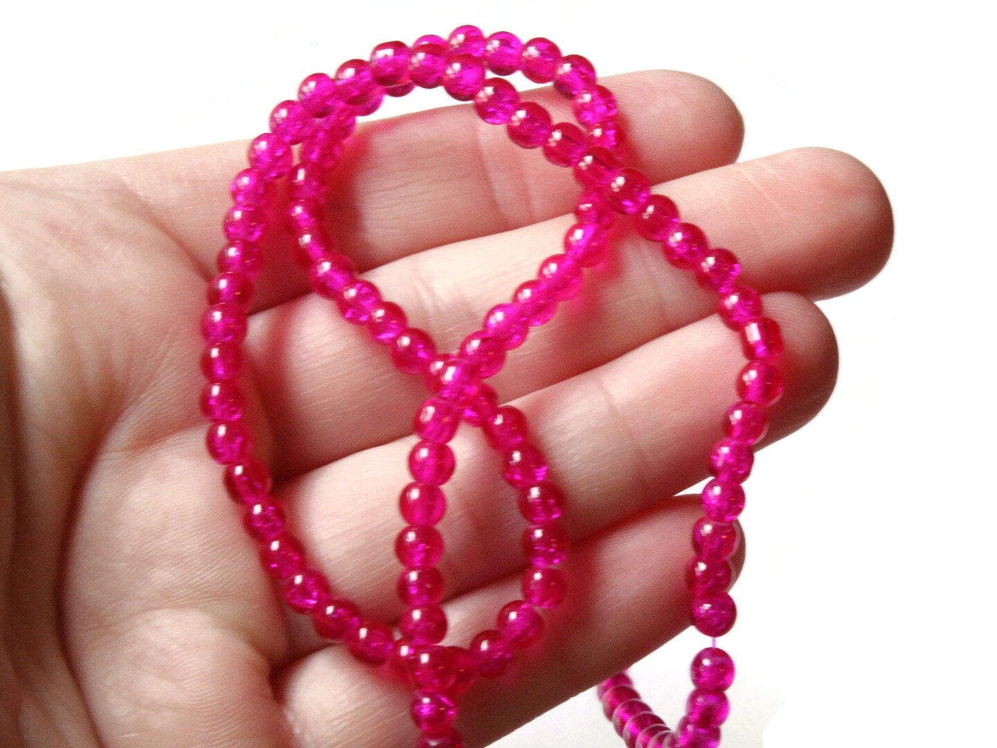 4mm Bright Pink Crackle Beads Cracked Glass Small Round Beads
