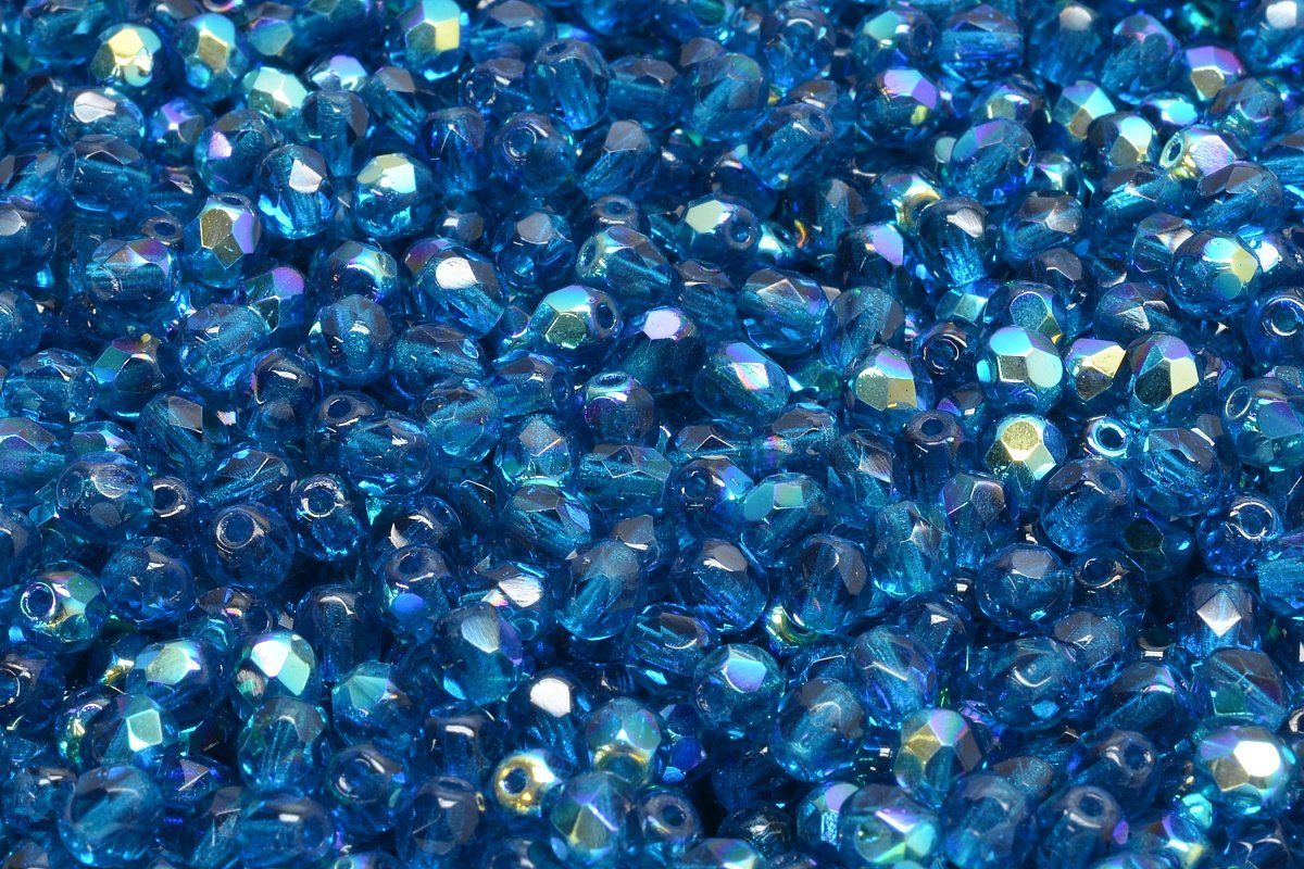 4mm Czech Fire Polish Round Bead, Capri Blue AB, 50 pieces