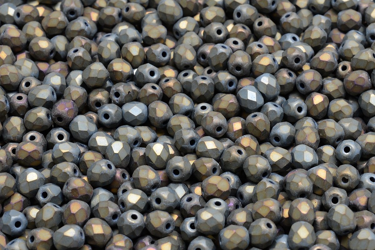 4mm Czech Fire Polish Round Bead, Matte Iris Brown, 50 pieces