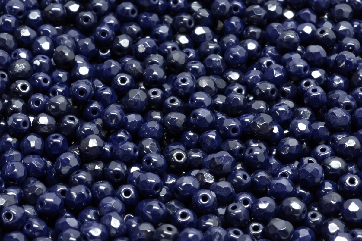 4mm Czech Fire Polish Round Bead, Opaque Navy, 50 pieces