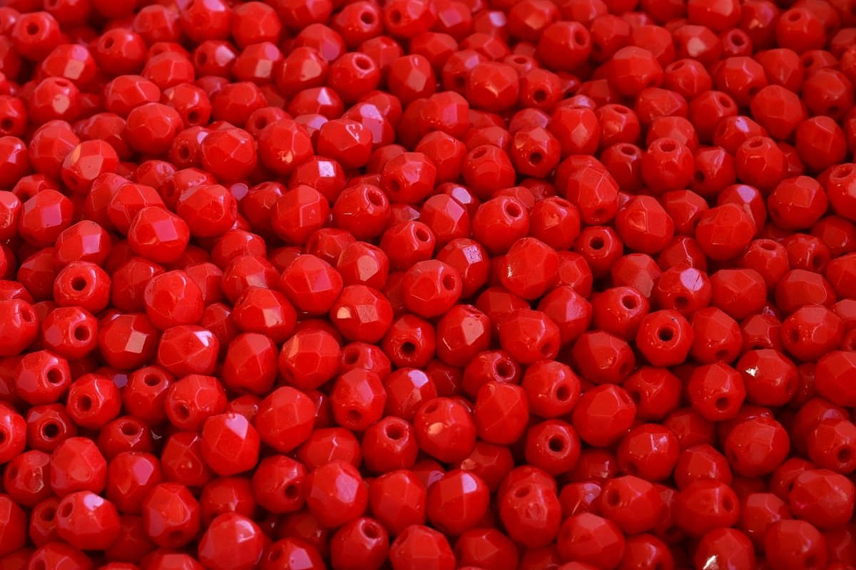 4mm Czech Fire Polish Round Bead, Red, 50 pieces