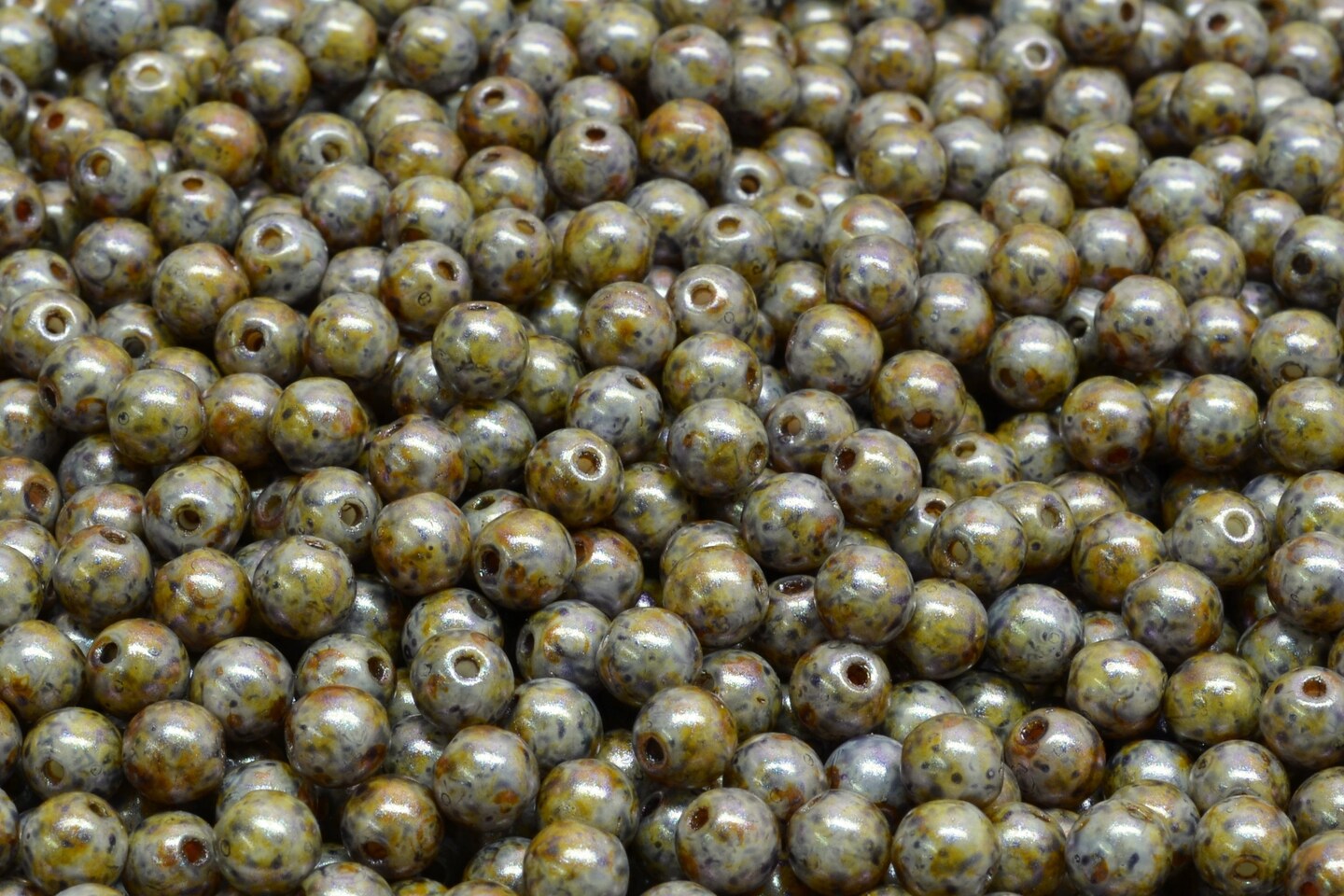 4mm Czech Round Druk Bead, White Sage Picasso, 50 pcs