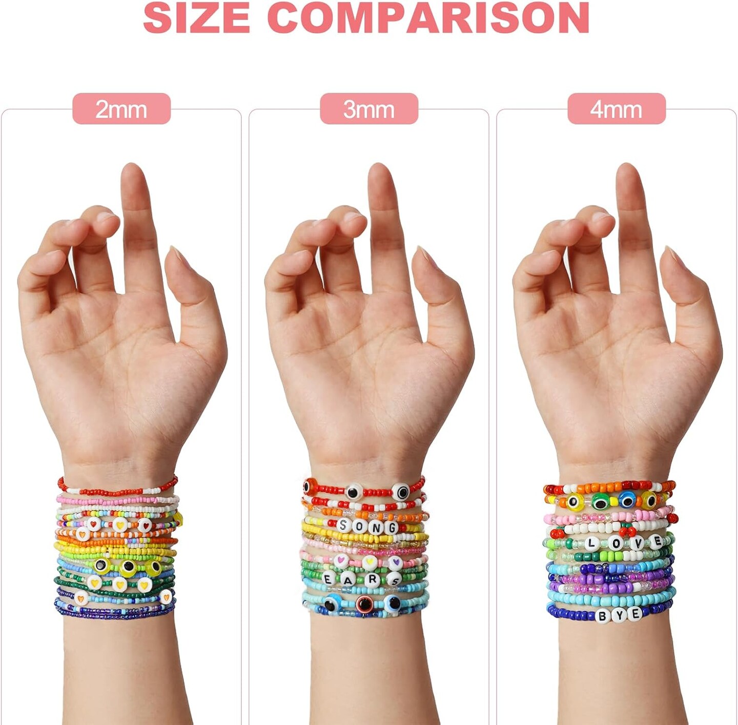 4mm Glass Seed Beads for Jewelry Bracelet Making Kit, Small Beads Friendship Bracelet Kit, Tiny Waist Beads with Letter Beads and Elastic String
