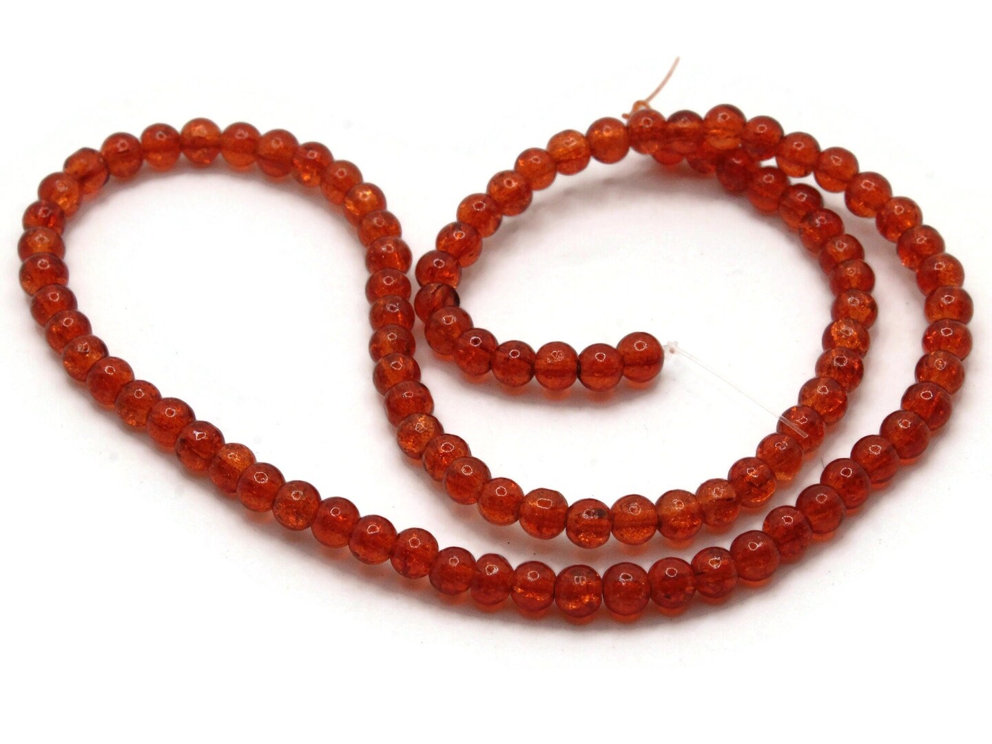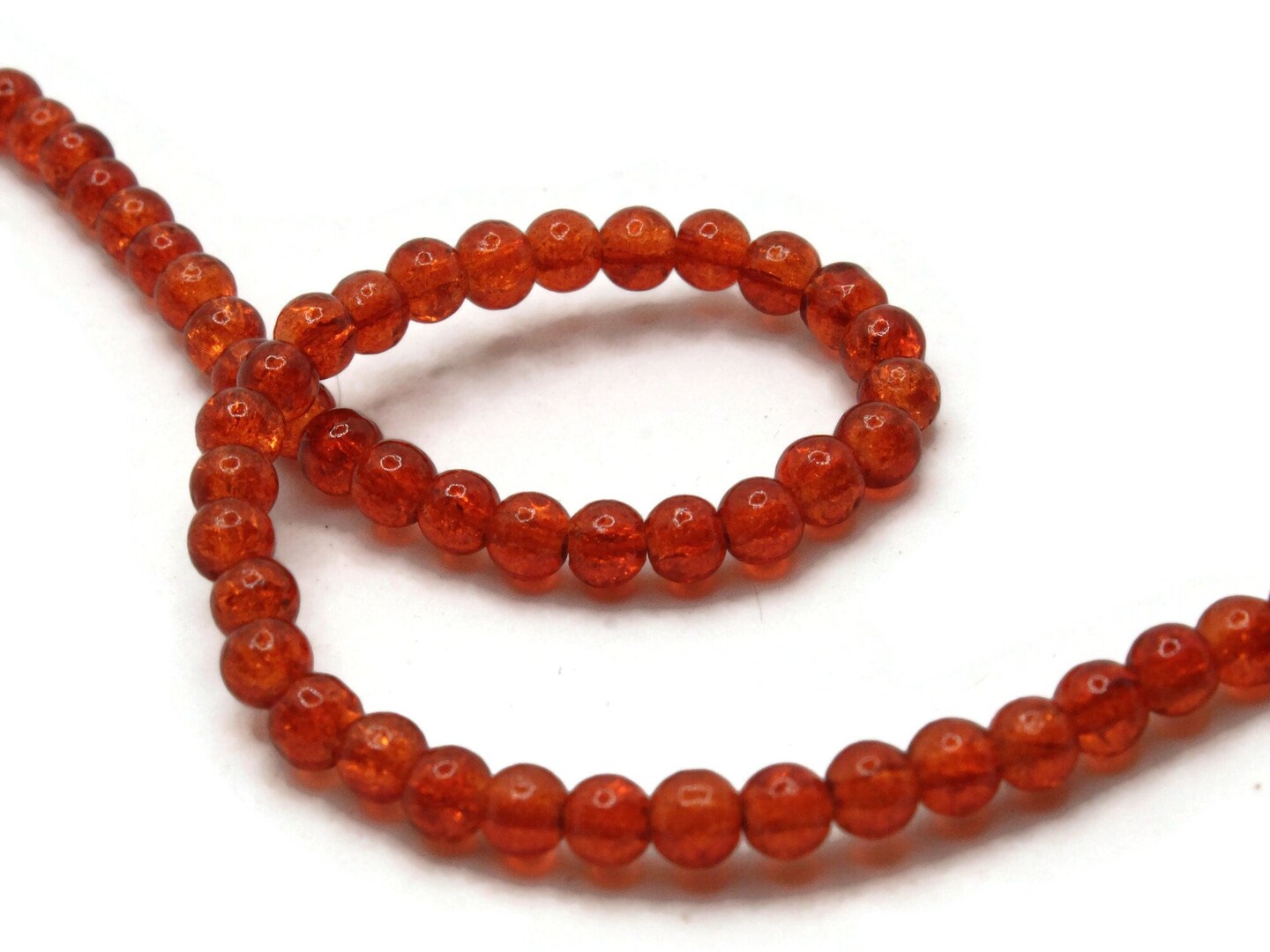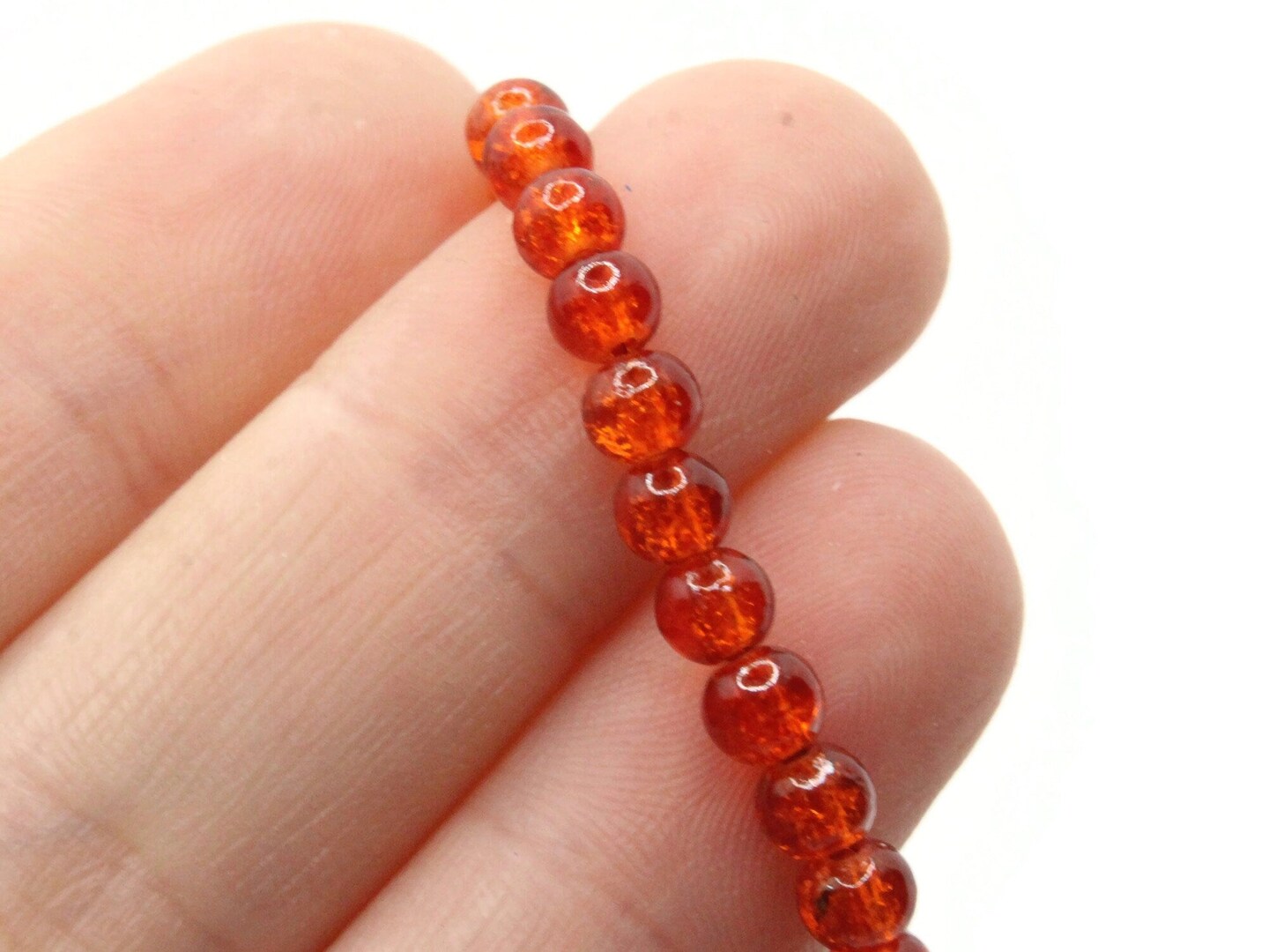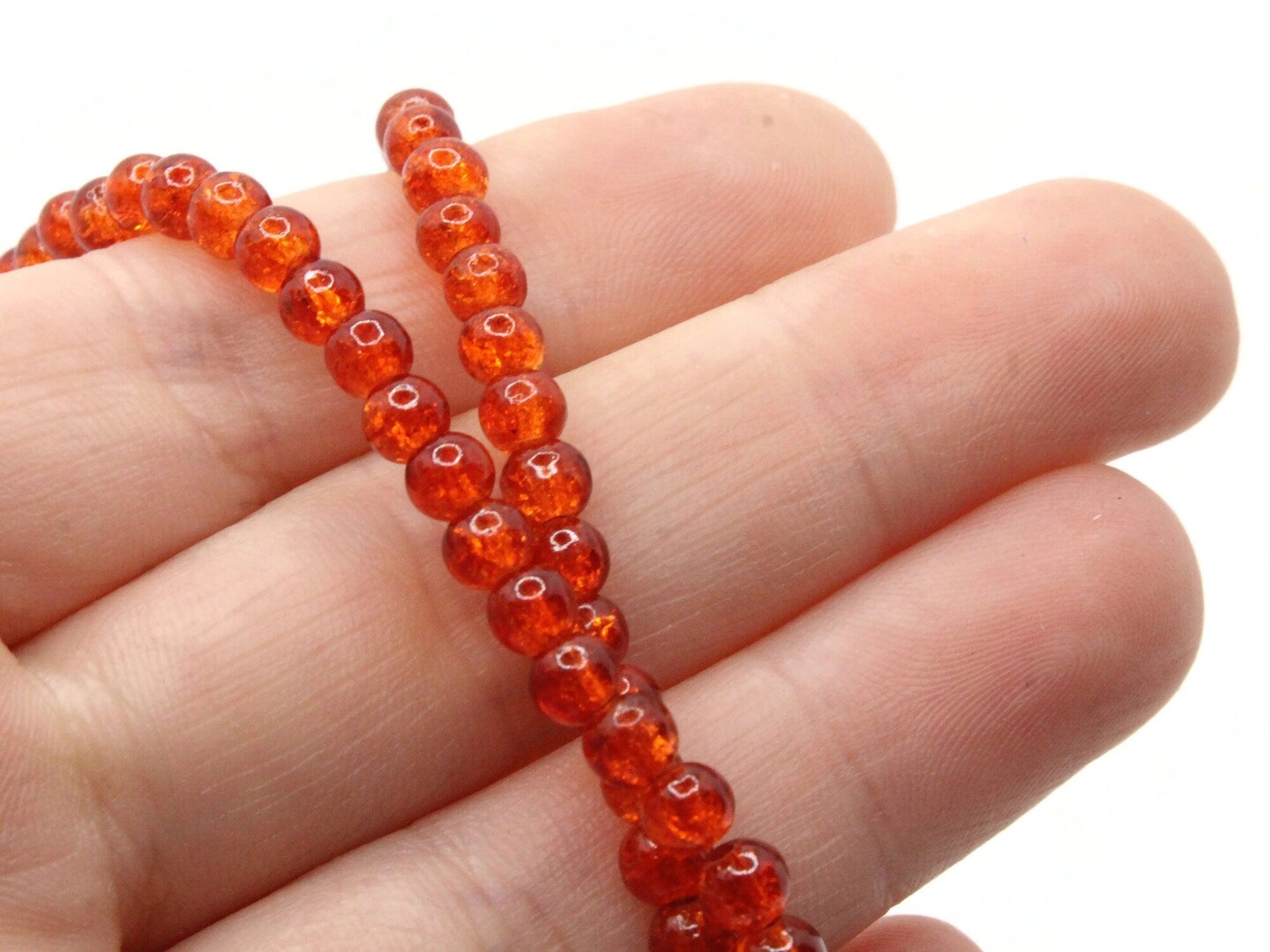 4mm Sunset Orange Crackle Glass Smooth Round Beads