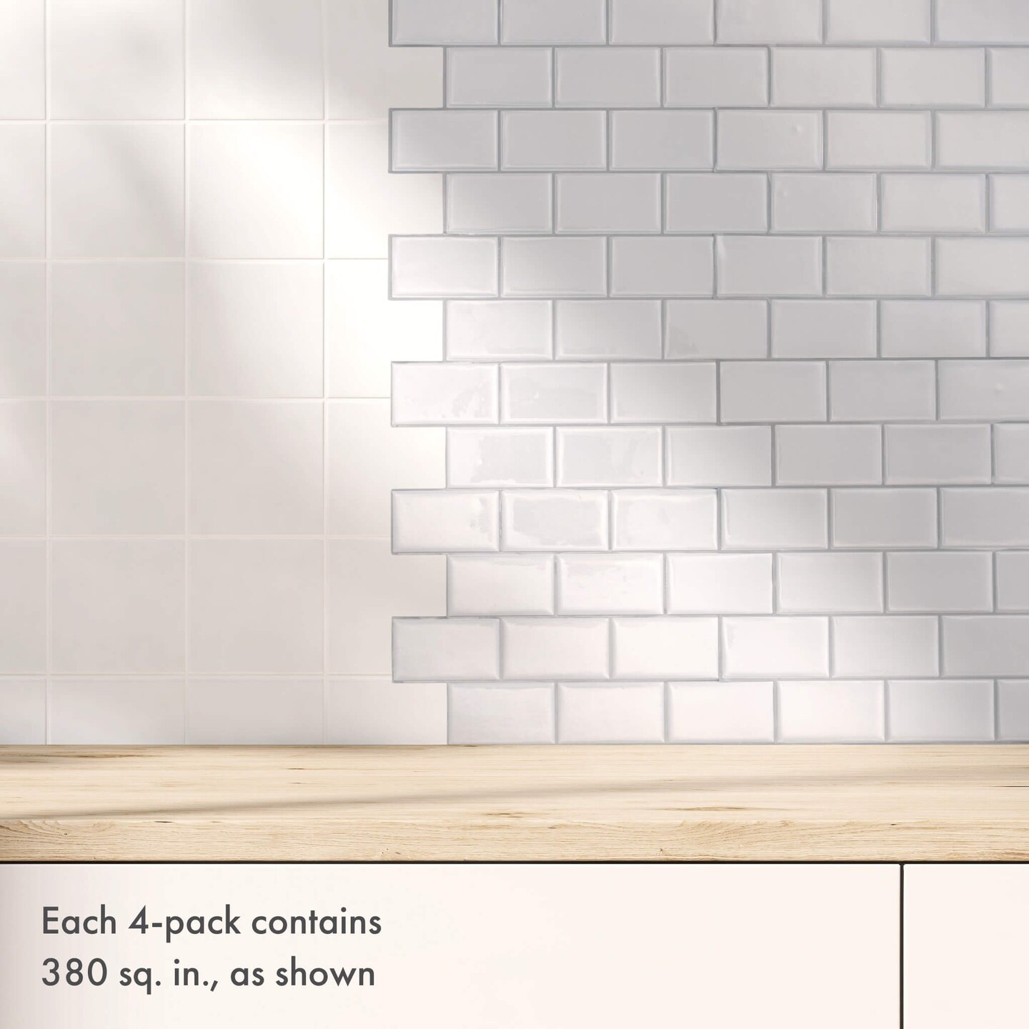 4-Pack 10.5" x 10.5" Peel and Stick White Subway Tile Backsplash. Covers 3.06 Sq. Ft