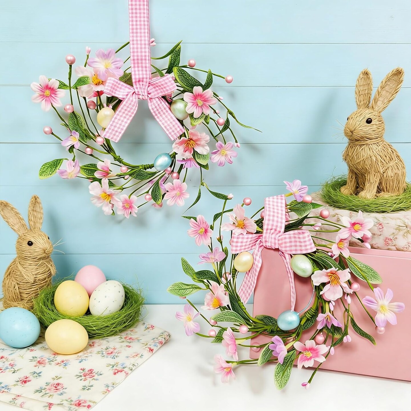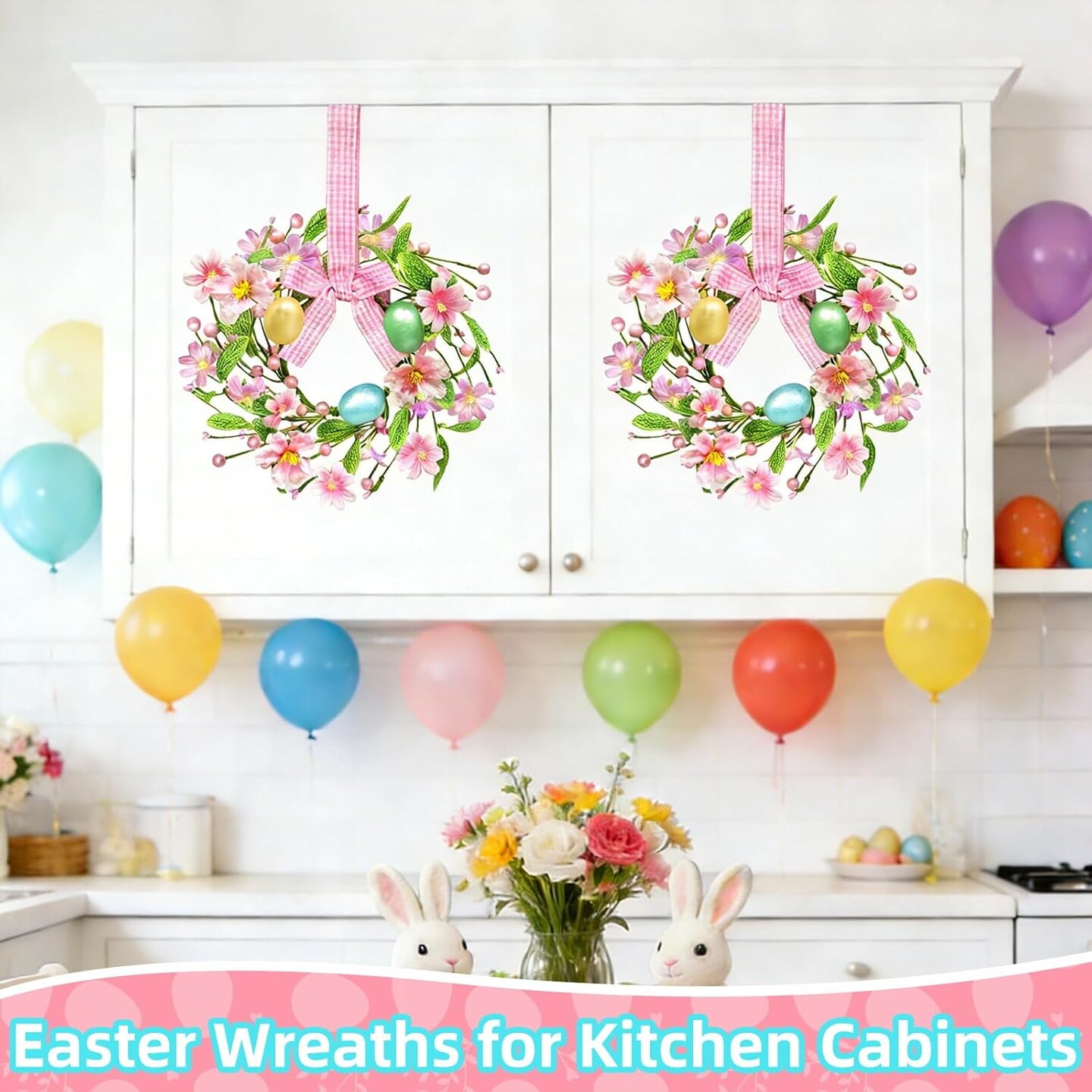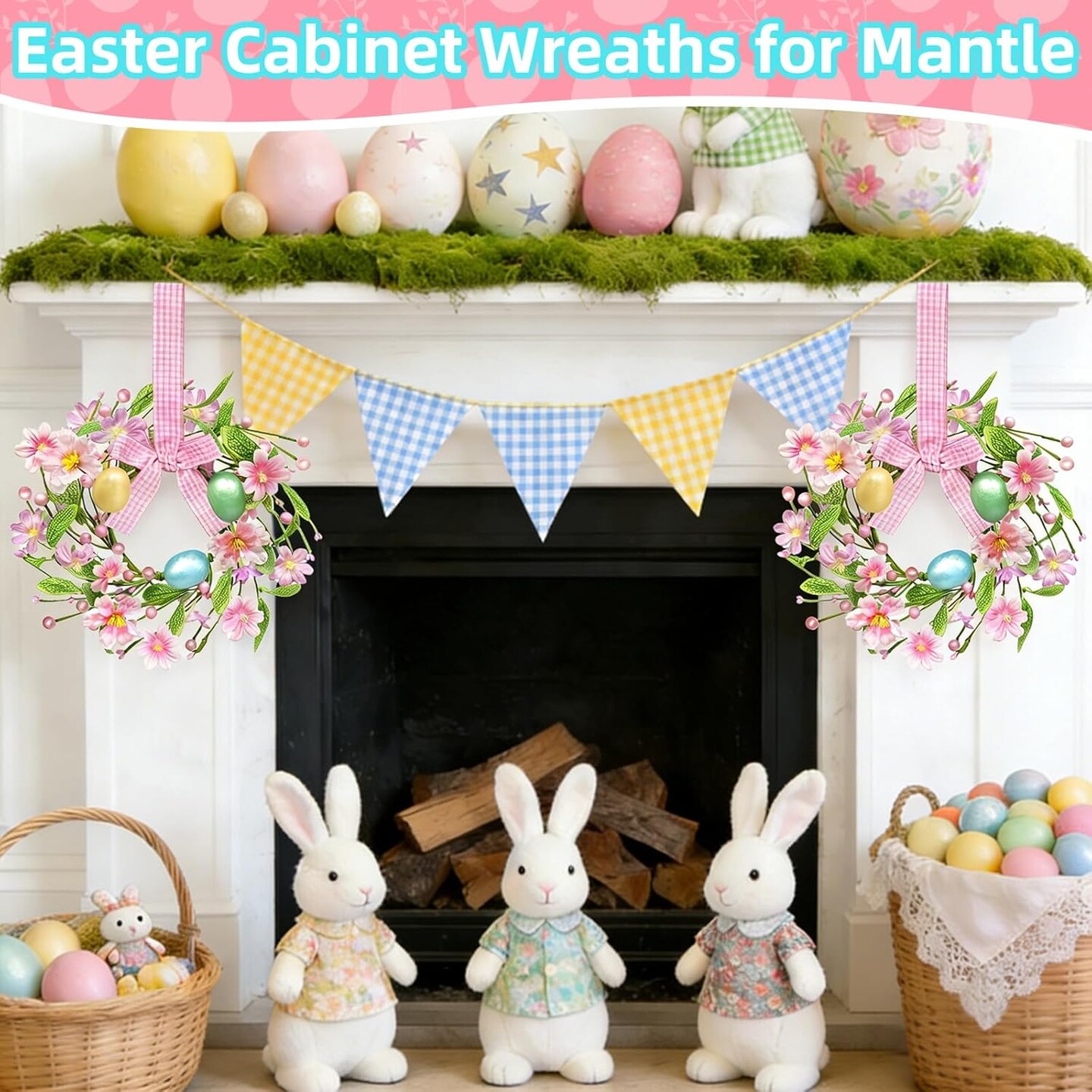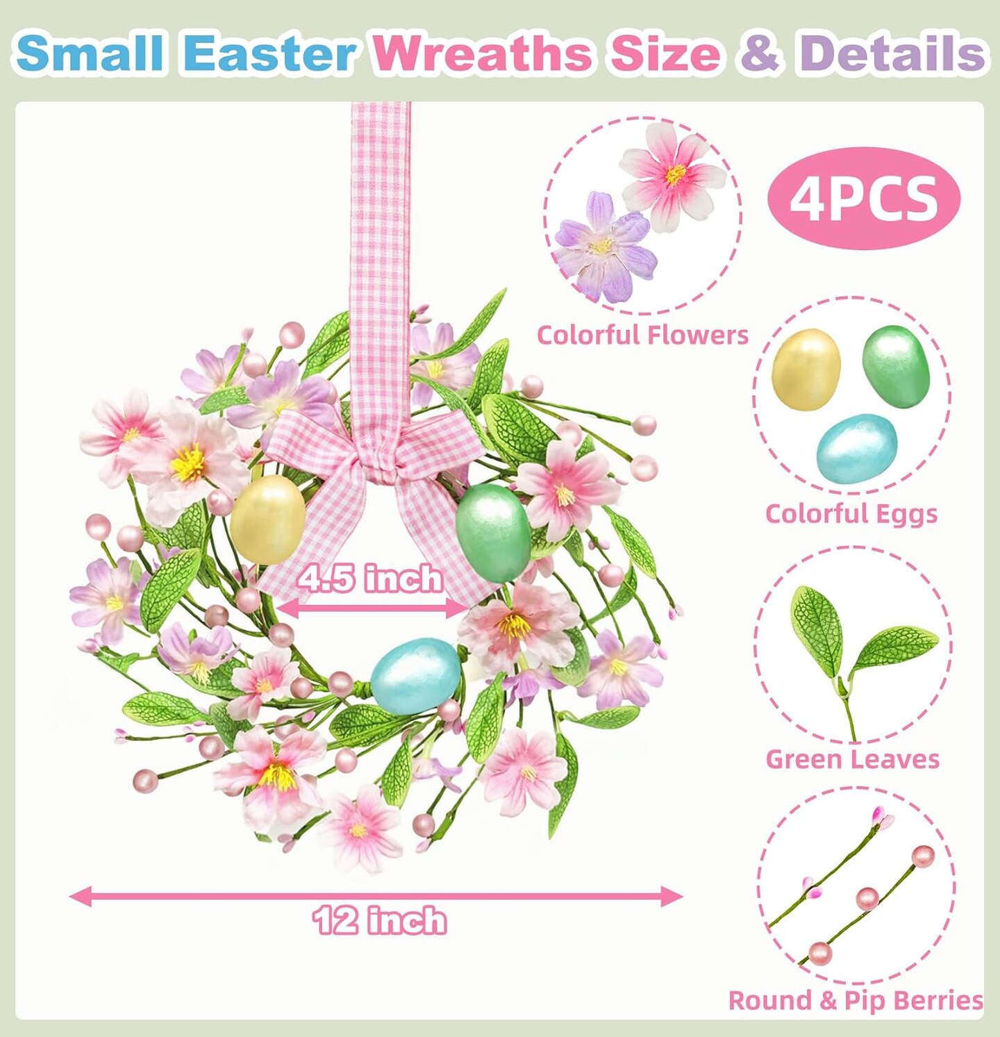 4-Pack 12-Inch Mini Easter Wreaths – Colorful Eggs, Flowers, and Bow for Kitchen Cabinets, Windows, Doors, and Spring Decor