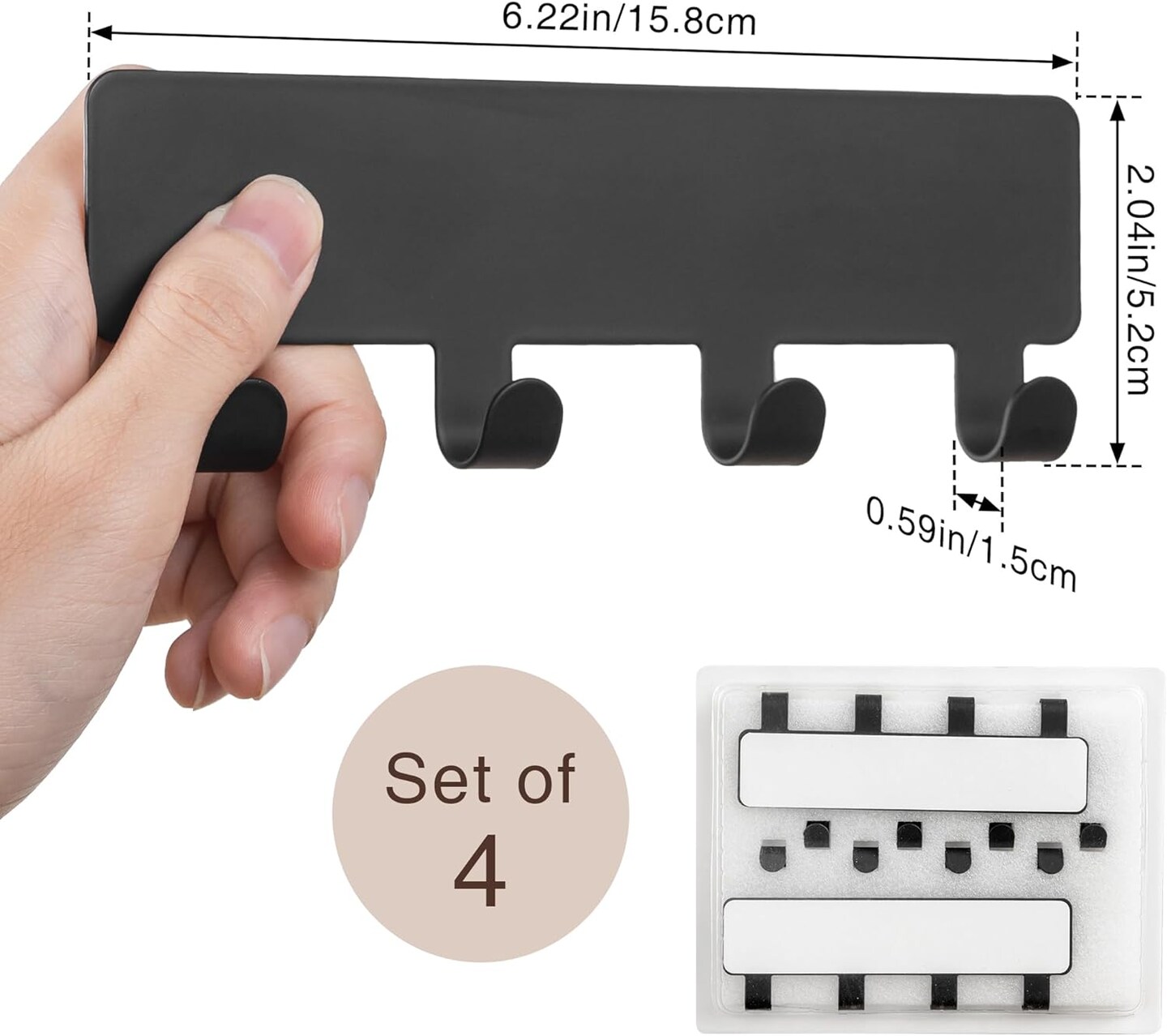4Pack 16 Key Hooks Key Holder 6.2x2'' for Wall AdhesiveWall Mount Hanger Key Hanging Organizer Entryway Hooks