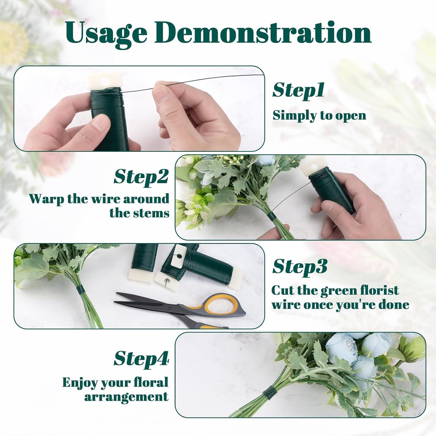 4-Pack 22-Gauge Green Floral Wire, 131 Yards for Wreaths & Crafts