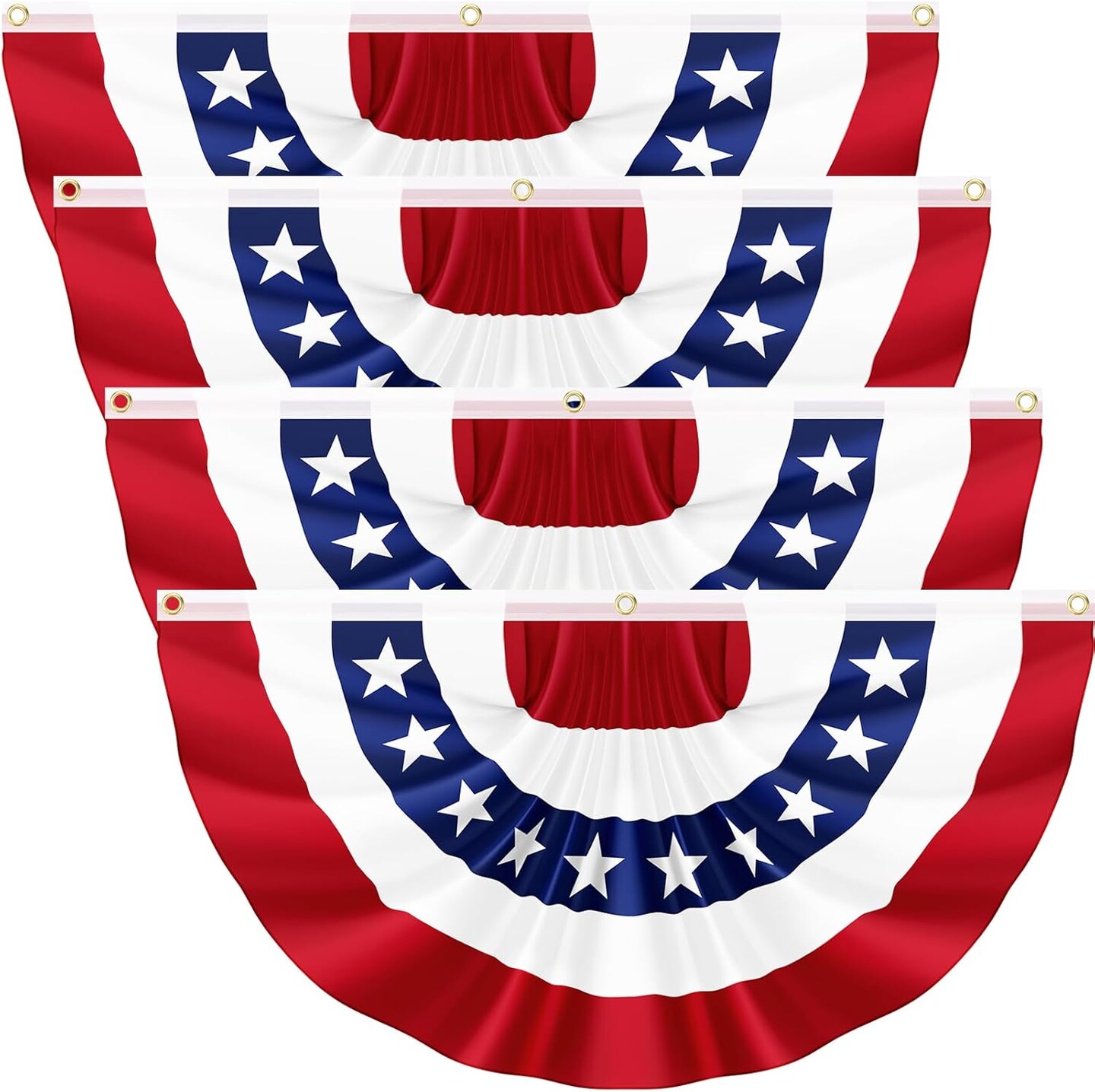 4Pack 3x6 FT American Pleated Fan Flag, USA Patriotic Half Fan Bunting Flag