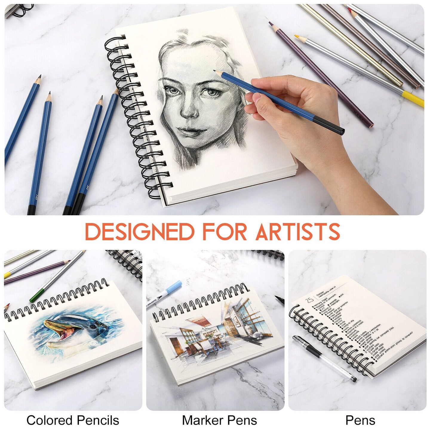 4Pack A5 Spiral Sketch Pads for Drawing, Acrylic Paint