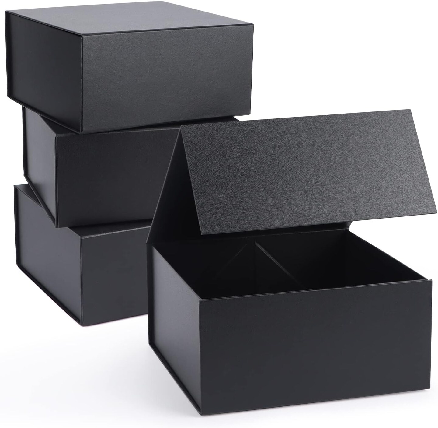 4-Pack Black Magnetic Gift Boxes with Lids (8 × 8 × 4 in) – Glossy Square Collapsible Gift Boxes for Birthdays, Weddings, Mother’s Day & Bridesmaid/Groomsman Proposals (Black 4pcs/8x8x4)